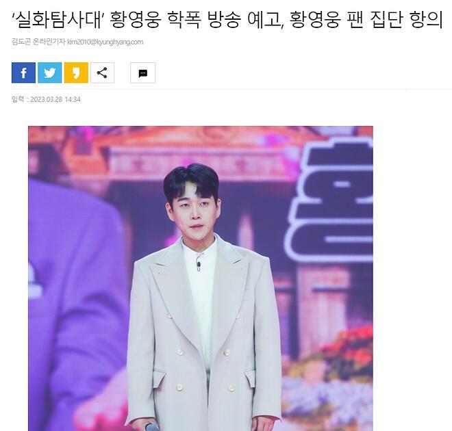 황영웅은 최근 종영한 MBC '불타는 트롯맨'의 유력한 우승후보였다. 방송 초반부터 치고 나가면서 '어우황(어차피 우승은 황영웅)이라는 평가를 들었다. 하지만 그의 과거 학폭이 폭로됐다. 여기에 여자친구 폭행까지 폭로됐다. 자신보다 힘이 약한 여자친구, 친구들만 골라서 괴롭혔다는 악질적인 학폭이었다. 그렇지만 황영웅과 '불타는 트롯맨' 제작진은 외면했다. 방송 완주를 천명했다. 황영웅은 사과문을 발표했지만 '아닌 것을 바로잡겠다'라는 말을 굳이 집어 넣어 오히려 논란에 불 만 지폈다. 결국 황영웅은 결승 1라운드를 치르고 하차했다. 여전히 황영웅에 대한 여론이 좋지 않은데, 좋지 않은 여론의 한 축을 담당하는 중성스러 운 황영웅 팬들이 이번에도 나섰다. 황영웅 팬들은 '실화탐사대' 게시판에 찾아가 온갖 약담을 쏟아붓고 있다.