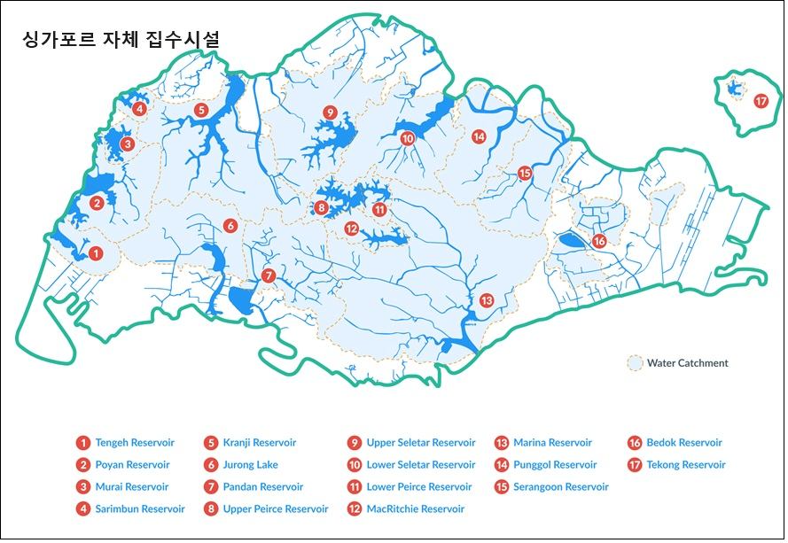 싱가포르는 해수 담수화 플랜트빗물 저장 시설, 그리고 하수처리 터널을 건설해 물을 재사용하는 시스템을 구축했습니다. 이런 물 자원 확보를 위한 노력은 싱가포르 생존 전략의 핵심입니다.