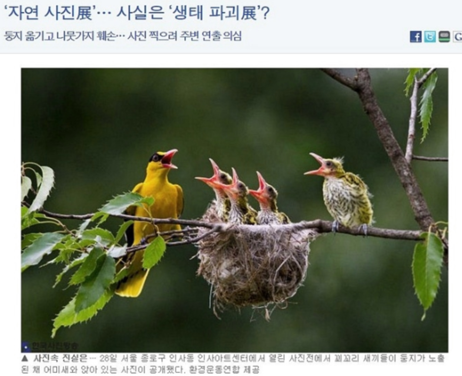 그런데 사진전에 출품되었던 사진들 중 일반적인 새들의 습성과 틀린 사진들이라서 의문을 제기했는데요.