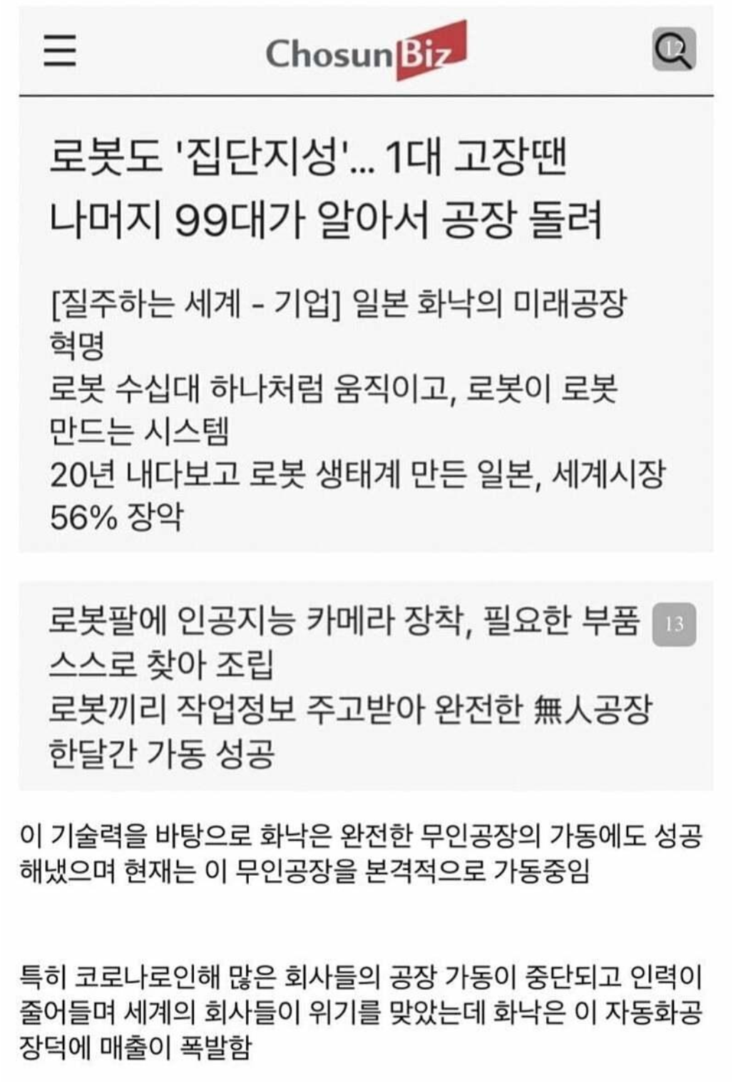 화낙의 대성공 이후 스위스의 ABB나 독일의 KUKA 일본의 키엔스 같은 회사들도 화낙처럼 팩스와 종이를 사용하여 기밀유출 방지를 한다고 합니다.