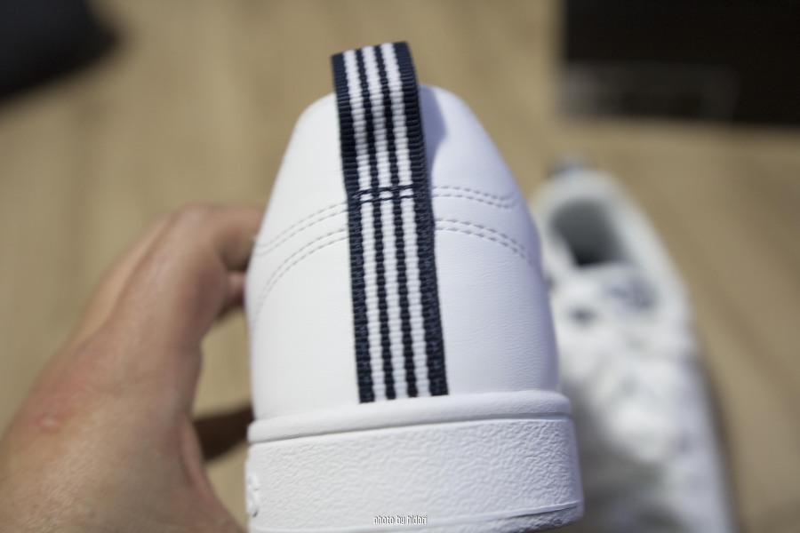 뒷편 로고는 톰브라운을 연상케 하지만, 자세히 보면 아디다스의 삼선 로고입니다. 어드벤티지 클린은 최대한 심플하게 디자인되어 있어 봄날씨에 특히 잘 어울릴 것 같습니다. 굽도 적당히 높아서 여성분들도 편안하게 신을 수 있을 것 같습니다.
