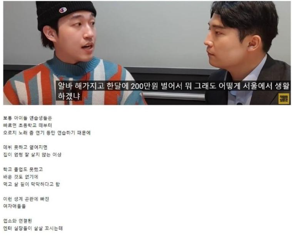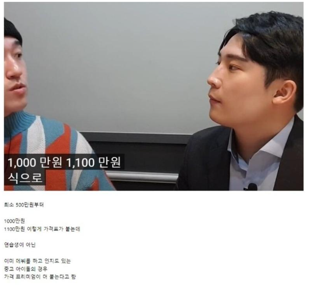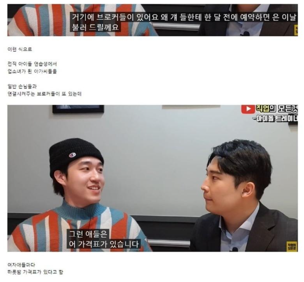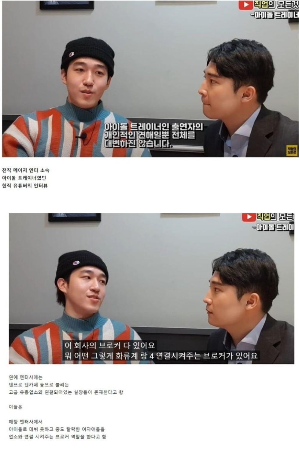 한 유튜브에서 전직 엔터 소속 아이돌 트레이너가 나와서 인터뷰를 했습니다.
