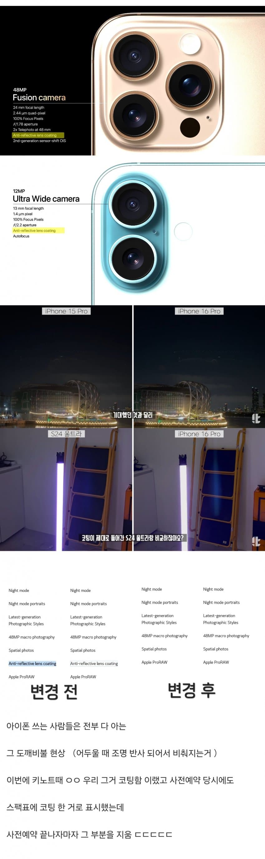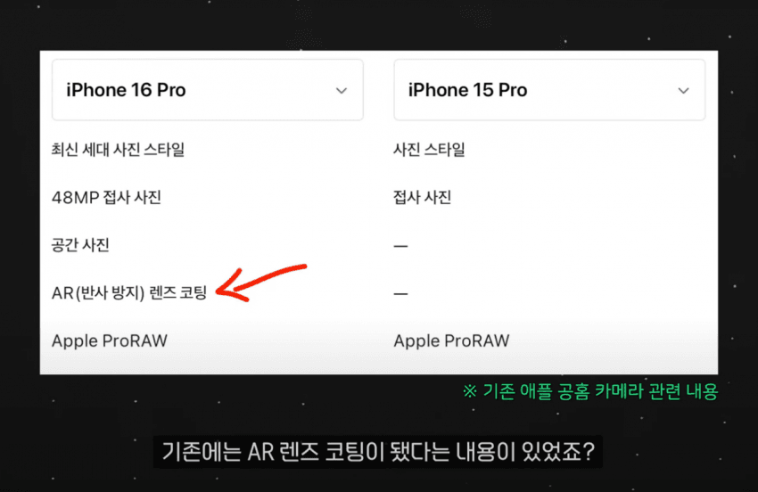 아이폰 16프로 AR 렌즈 코팅 논란, 애플 사양 표기 삭제?