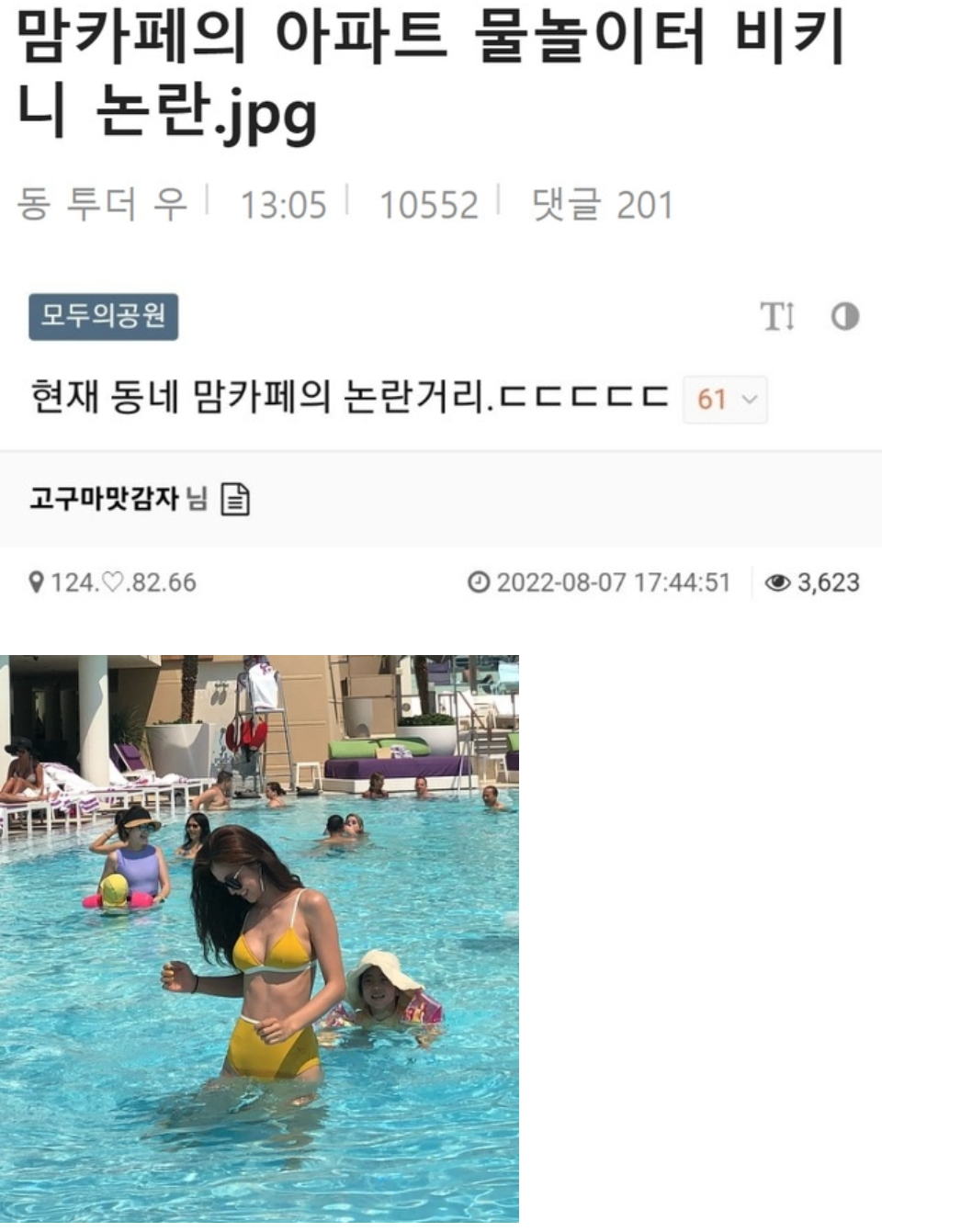 아파트 물놀이터 비키니 맘이 논란거리로 떠오르고 있습니다.