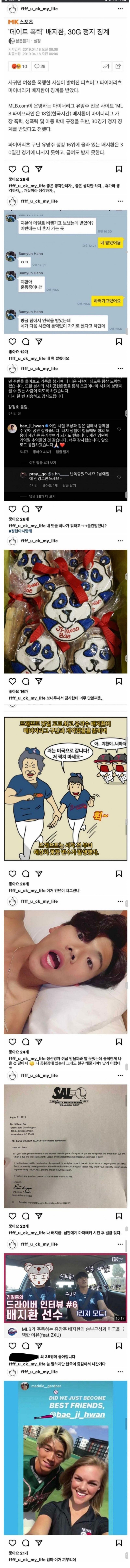 야구선수 배지환 인스타 게시물 논란 입니다.