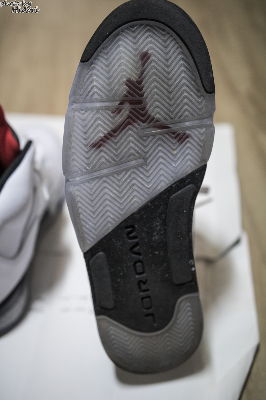에어 조던5 화이트시멘트는 풀 패밀리 사이즈로 발매되었으며, 제가 구매한 것은 여성용 버전입니다. 남성용과는 다르게 아이스솔 부분이 여성용에서 더 예쁘게 보입니다. 혀 부분의 스카치와 함께 뒷부분의 점프맨 로고도 인상적입니다.