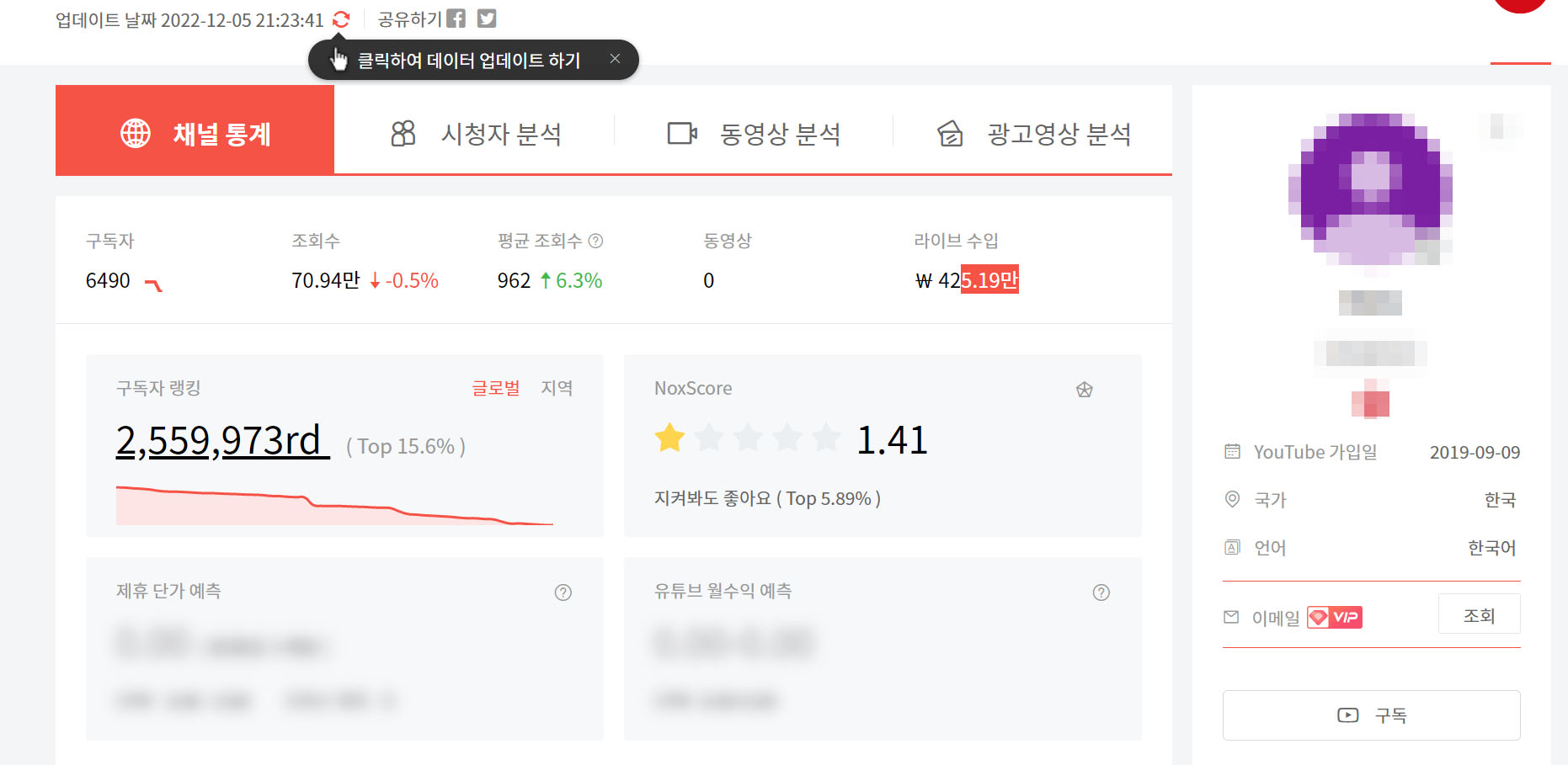 유튜버 B씨의 계정은 현재 삭제가 된것인지 검색이 되지 않습니다.