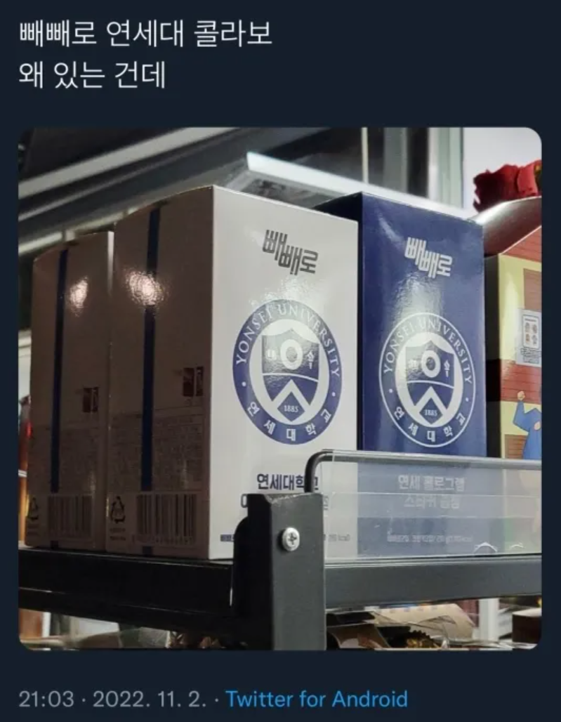 왜 연세대학교 로고를 넣어서 출시를 했는지 모르는 빼빼로...