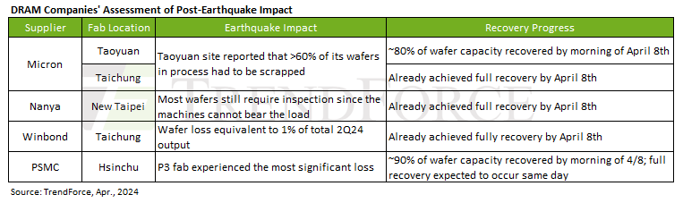 HBM 수요 증가와 2024년 4월에 발생한 대만 지진으로 인한 마이크론의 공급 차질 등으로 인해, 대한민국 D램 업체들의 점유율은 더욱 높아질 것으로 예상됩니다. 특히, 삼성전자가 레거시 D램을, SK하이닉스가 HBM3(E) 시장을 각각 장악하며, 이 2강 체제가 2025년까지 지속될 가능성이 큽니다.