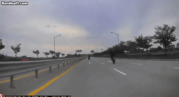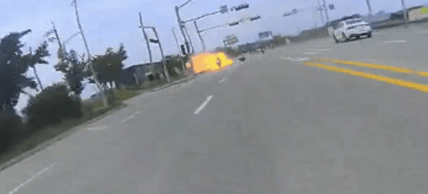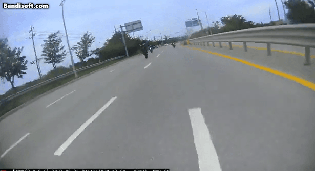 오토바이 주행 중 사고로 인해 오토바이가 폭발하는 장면이 블랙박스에 담겼습니다.