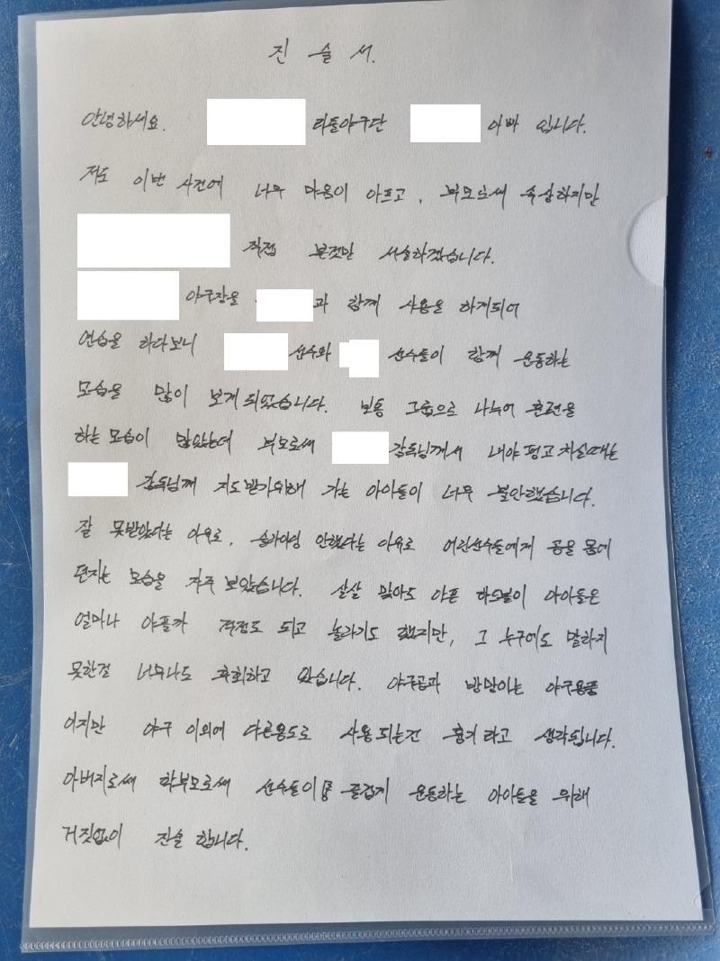이 학부모는 "부디 야구 뿐만 아니라 모든 운동을 통해 성장하는 아이들이 좋은 환경에서만 운동할 수 있는 환경이 조성되길 바란다"며 운동장에서의 안전과 체육문화의 중요성을 강조했다.