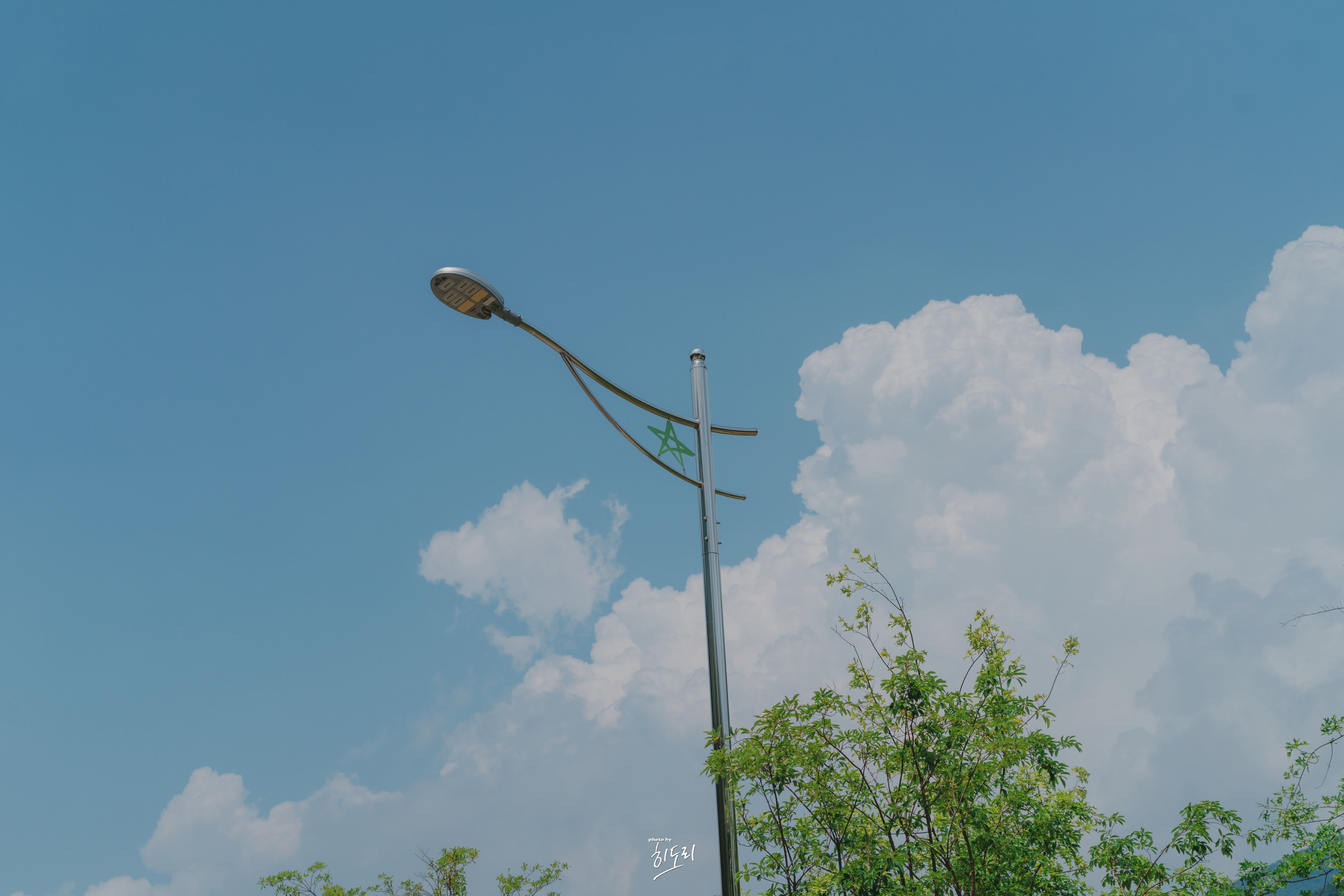 이번 사진은 도심속 우뚝 서 있는 한 그루의 나무와 그 위로 펼쳐진 맑고 푸른 하늘을 담고 있습니다.