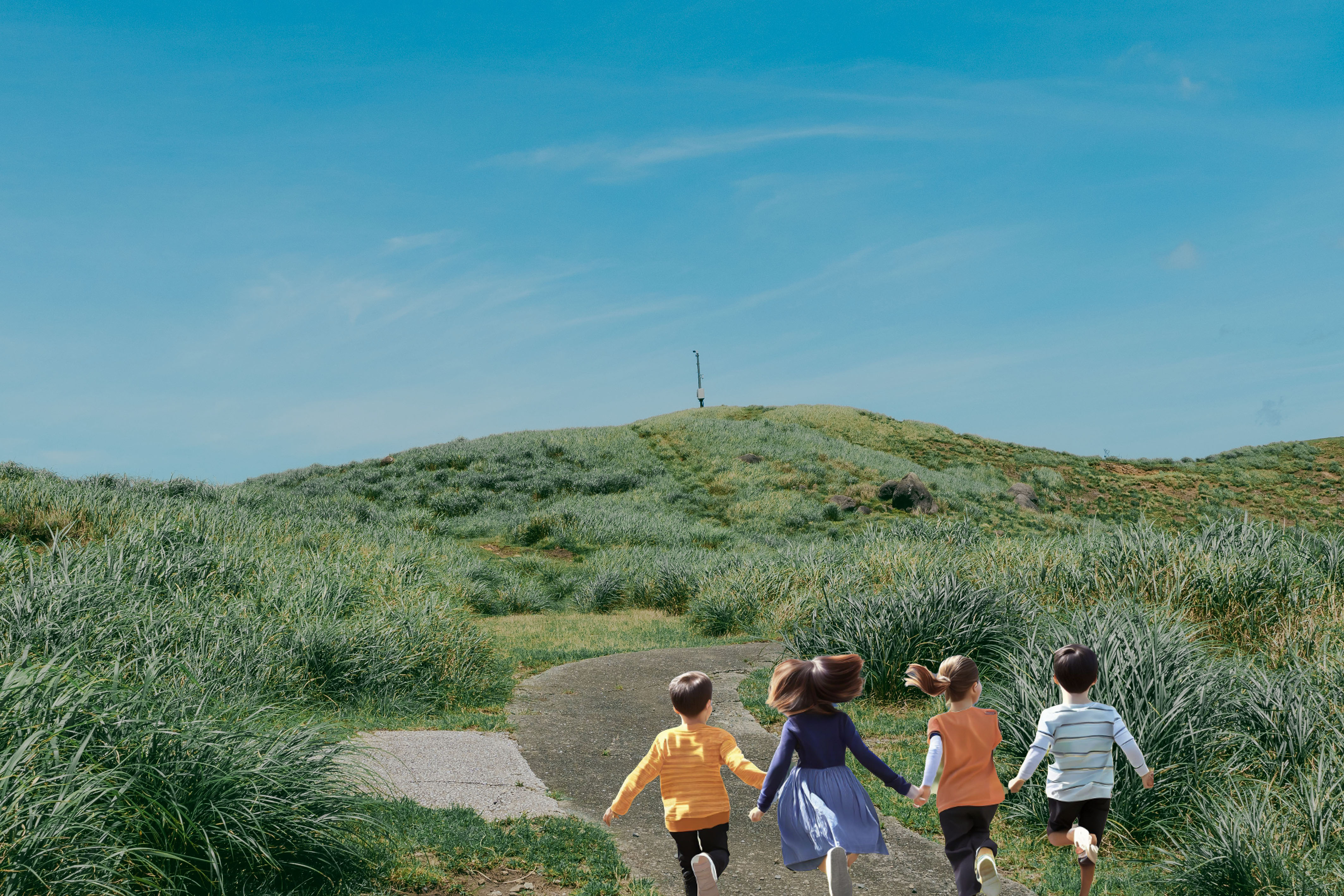 마지막 사진은 아이들이 푸른 하늘 아래서 뛰어노는 모습을 담았습니다.