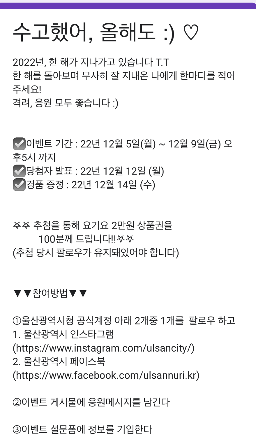 울산광역시 2022년 나에게 해주는 한마디 이벤트가 진행중입니다.
