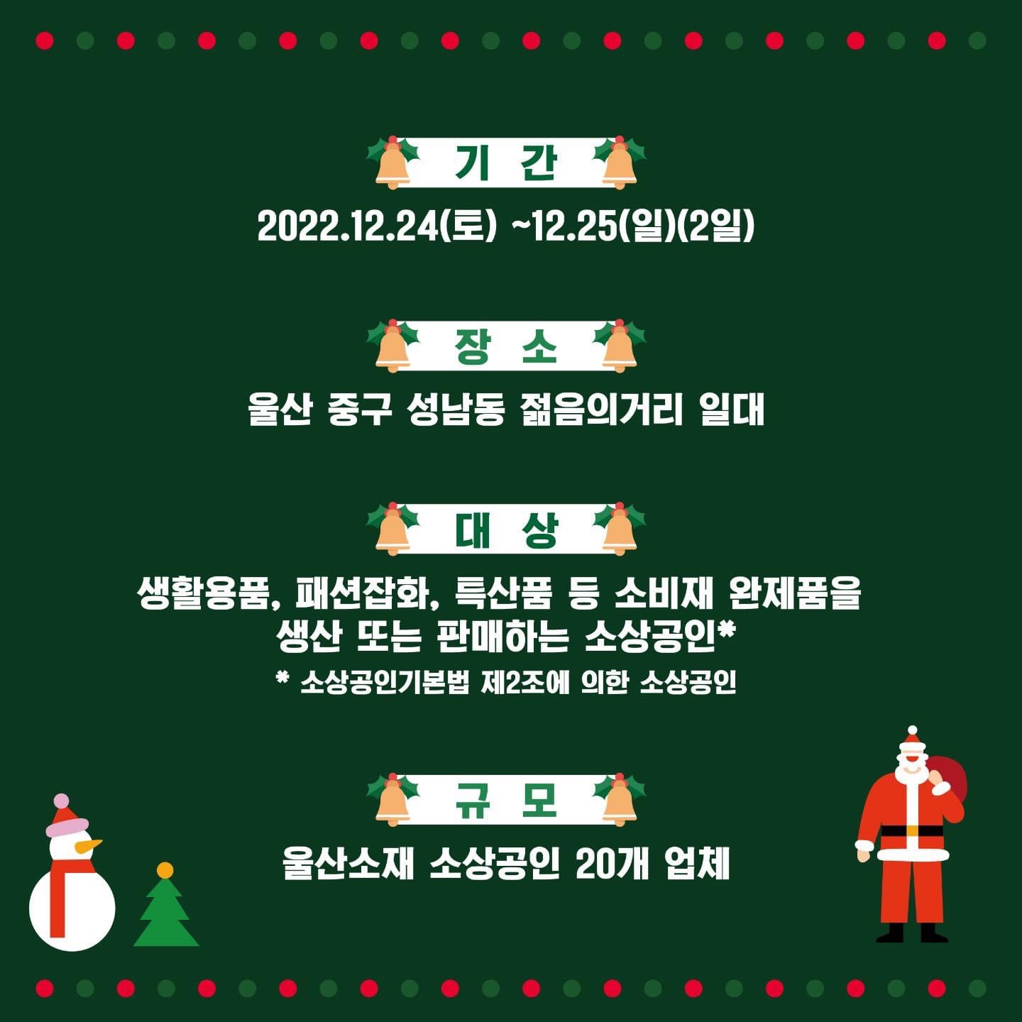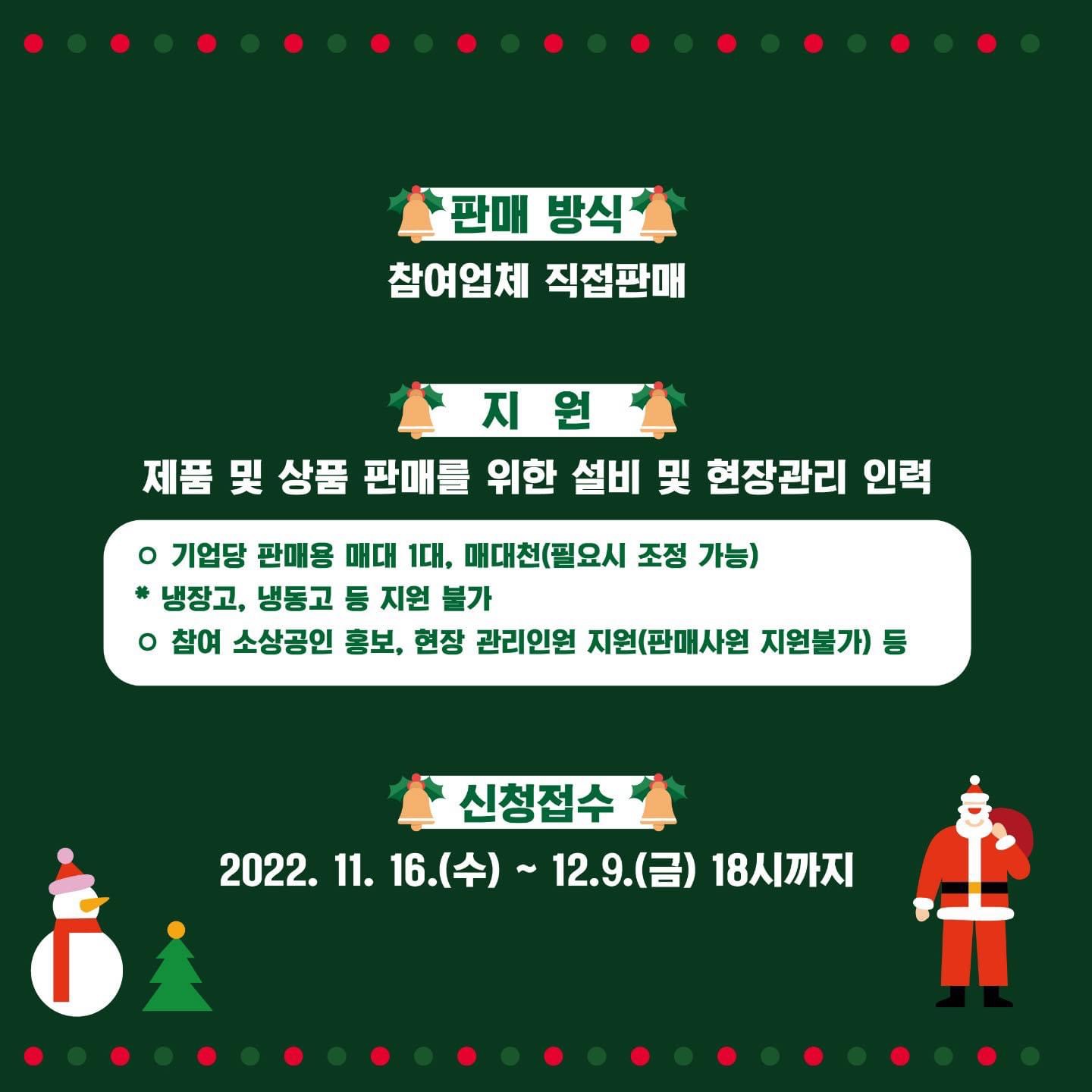 특히 크리스마스이브와 크리스마스 당일날 젊음의거리 일대에서 상점을 운영할 기업을 모집중 입니다.