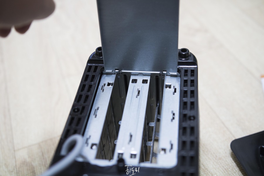 전선 두께가 두꺼운 편이라 전선 정리가 조금 난감합니다. 전선이 안쪽으로 마감되지 않아 한쪽이 살짝 올라가는 모양이 됩니다. 하지만, 가격이 저렴하니 이 정도는 참을 수 있습니다.