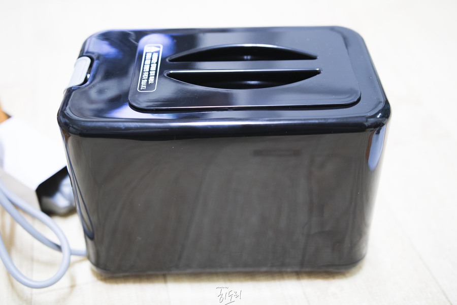 밑판에는 빵가루를 청소할 수 있게 여닫이 방식으로 되어 있습니다. 일반적인 미닫이식과는 다르게 고리로 고정되어 있어 열고 닫는 방식입니다. 청소할 때 토스터기를 들어야 하는 점은 아쉽지만, 가격을 생각하면 참을 만합니다.