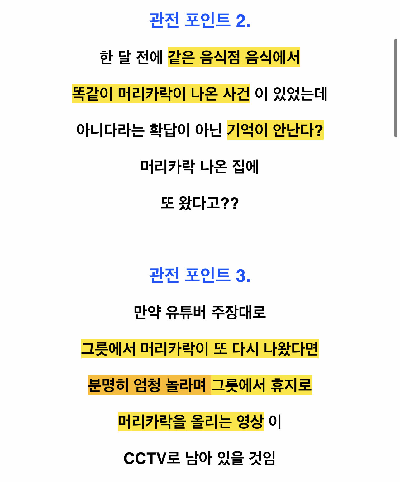3. 만약 머리카락이 또 다시 나왔다면 증거수집을 했을것임