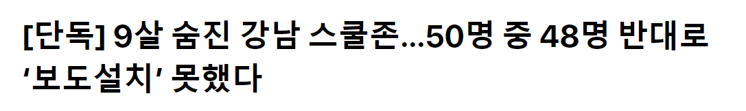 서울 강남의 한 초등학교 앞 어린이보호구역(스쿨존)에서 만취운전으로 초등학생을 숨지게 한 30대 남성이 4일 구속된 가운데, 2년 전 학교 쪽의 요청에도 도로가 일방통행으로 바뀌는 것이 싫었던 주민들의 반대로 ‘보도 설치’가 무산되었던 사실이 나왔습니다.