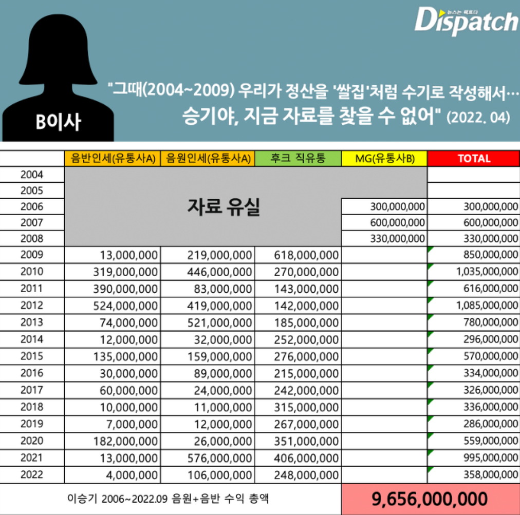 또 후크에서는 음원 정산 자료 유실로 04~08 기록은 없습니다.