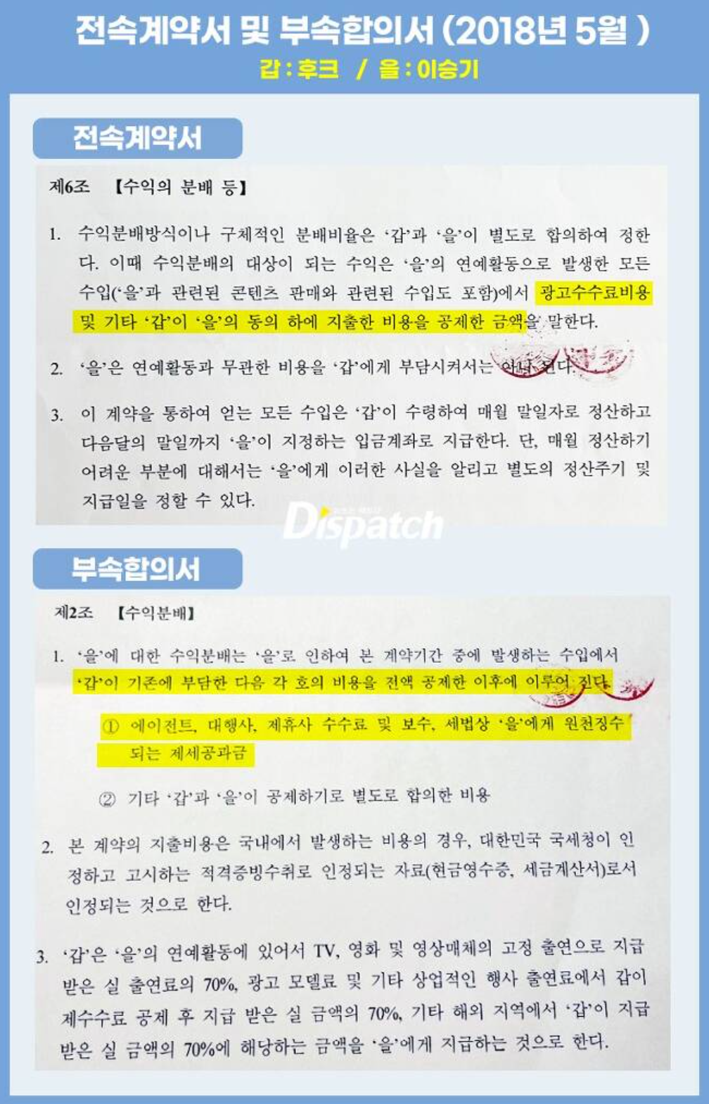 디스패치에서 이승기 정산 0원이라는 제목으로 기사가 나와서 하루종일 연예계가 떠들석 했습니다.
