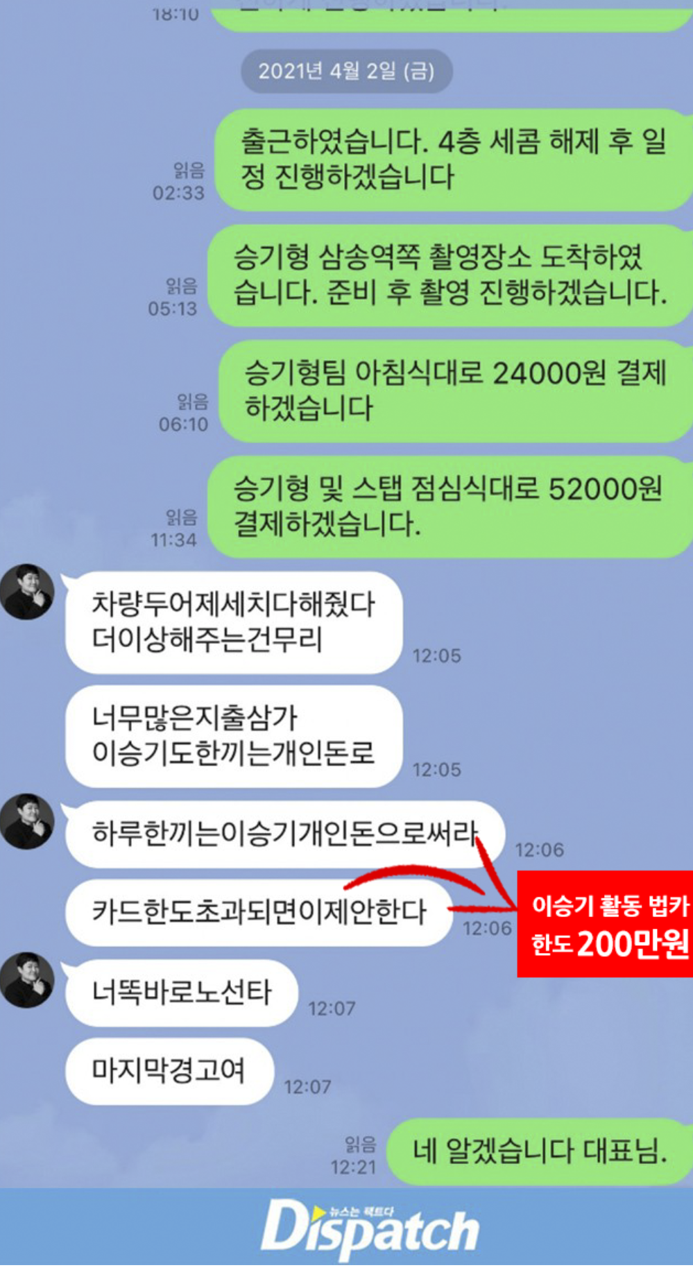 ① "승기야! 내 소속사 가수에게 이런 말 안 하고 싶은데… 네가 마이너스 가수인데 어떻게 정산을 해주니?" (2021년 6월)