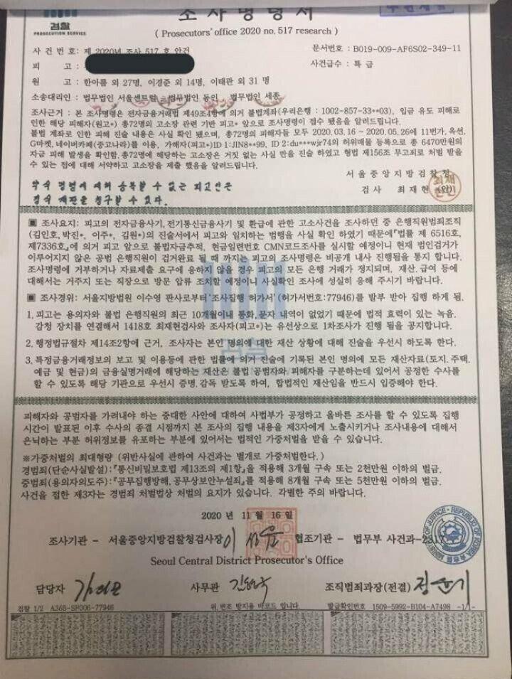 이제 카톡 또는 문자로 영장과 고소접수증, 법원관련 문서도 이미지로 보내준다고 합니다.