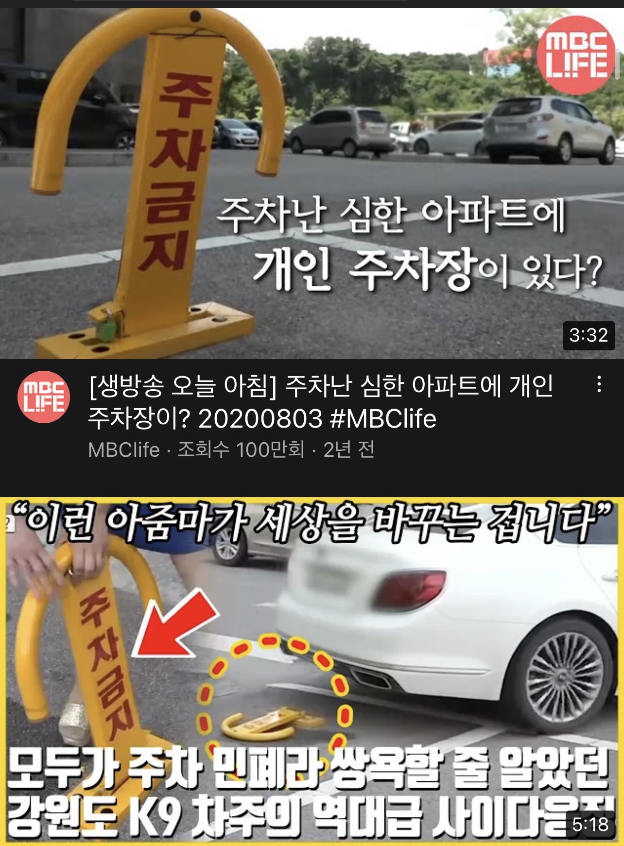 예전에도 한 아파트에서 k9 아줌마가 주차금지봉을 설치했던 사건이 있습니다. 처음에는 빌런인줄 알았지만 속을 알고나니 수긍이 갔었죠!