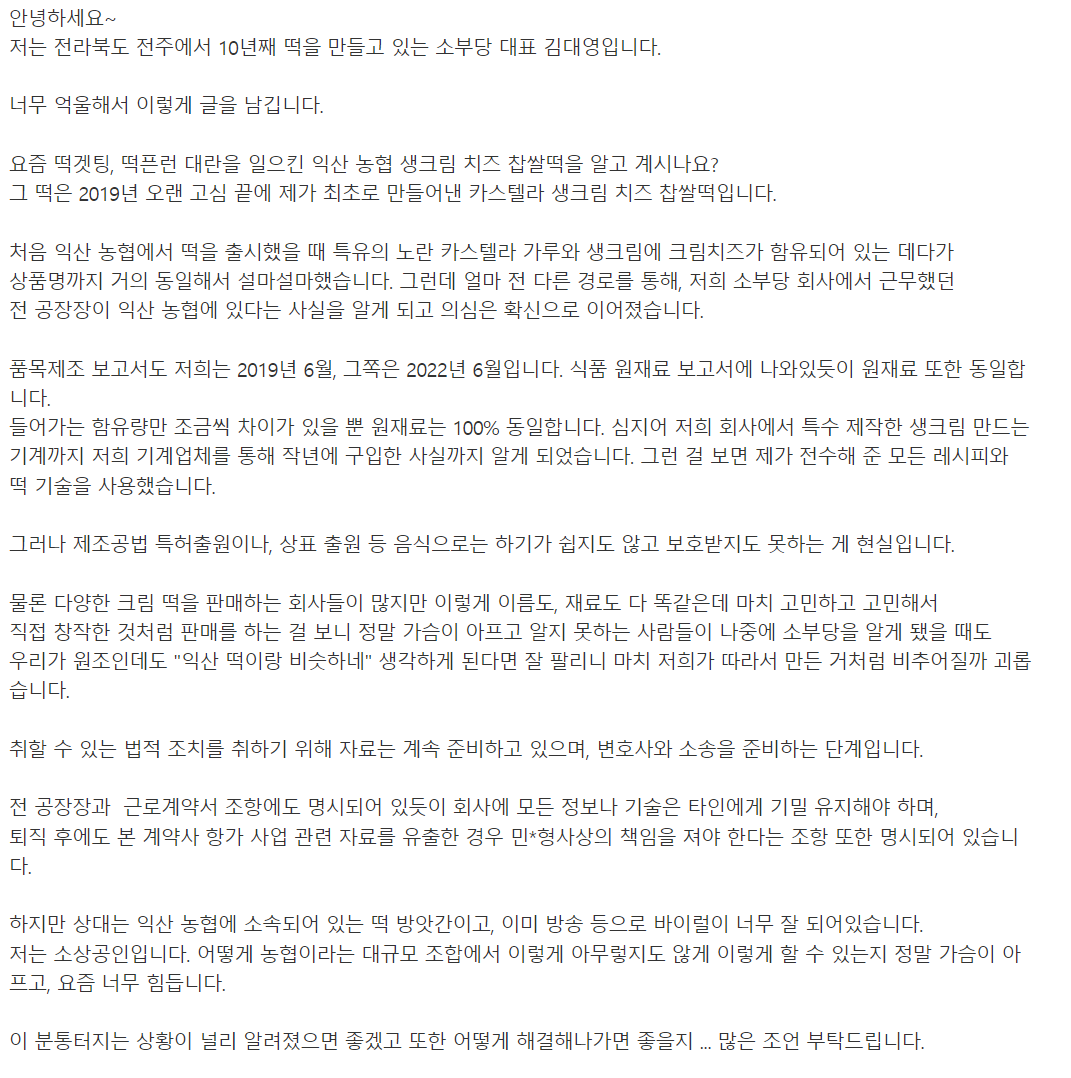 3. 떡을 출시했을때 설마설마 했지만 익산농협에 일하는 사람이 예전 소부당에서 일했던 직원
