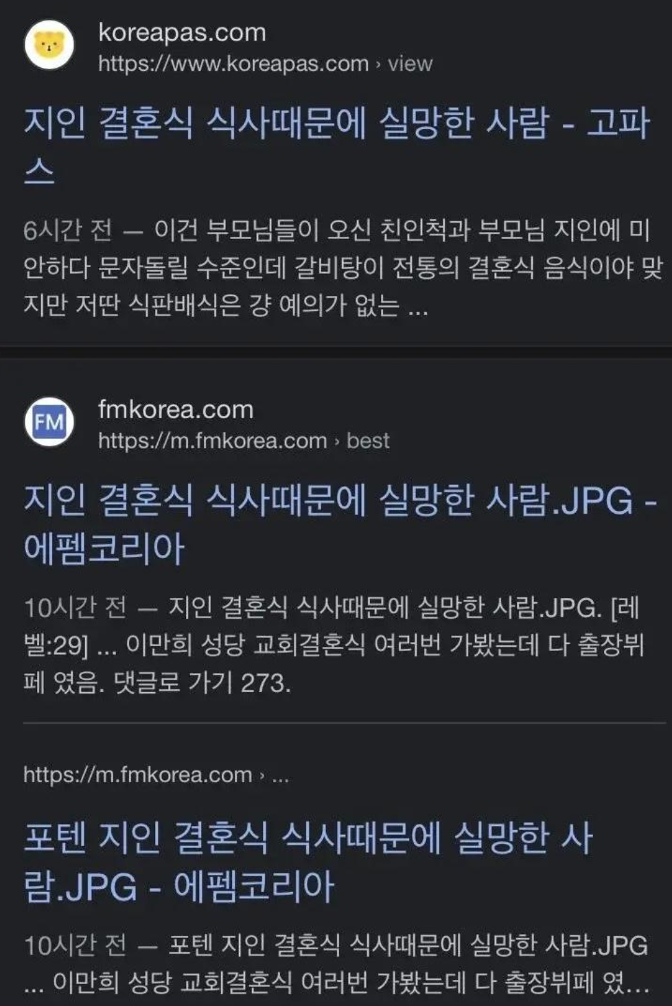 결혼식 식사때문에 실망한 사람이라는 이름으로 도배중....