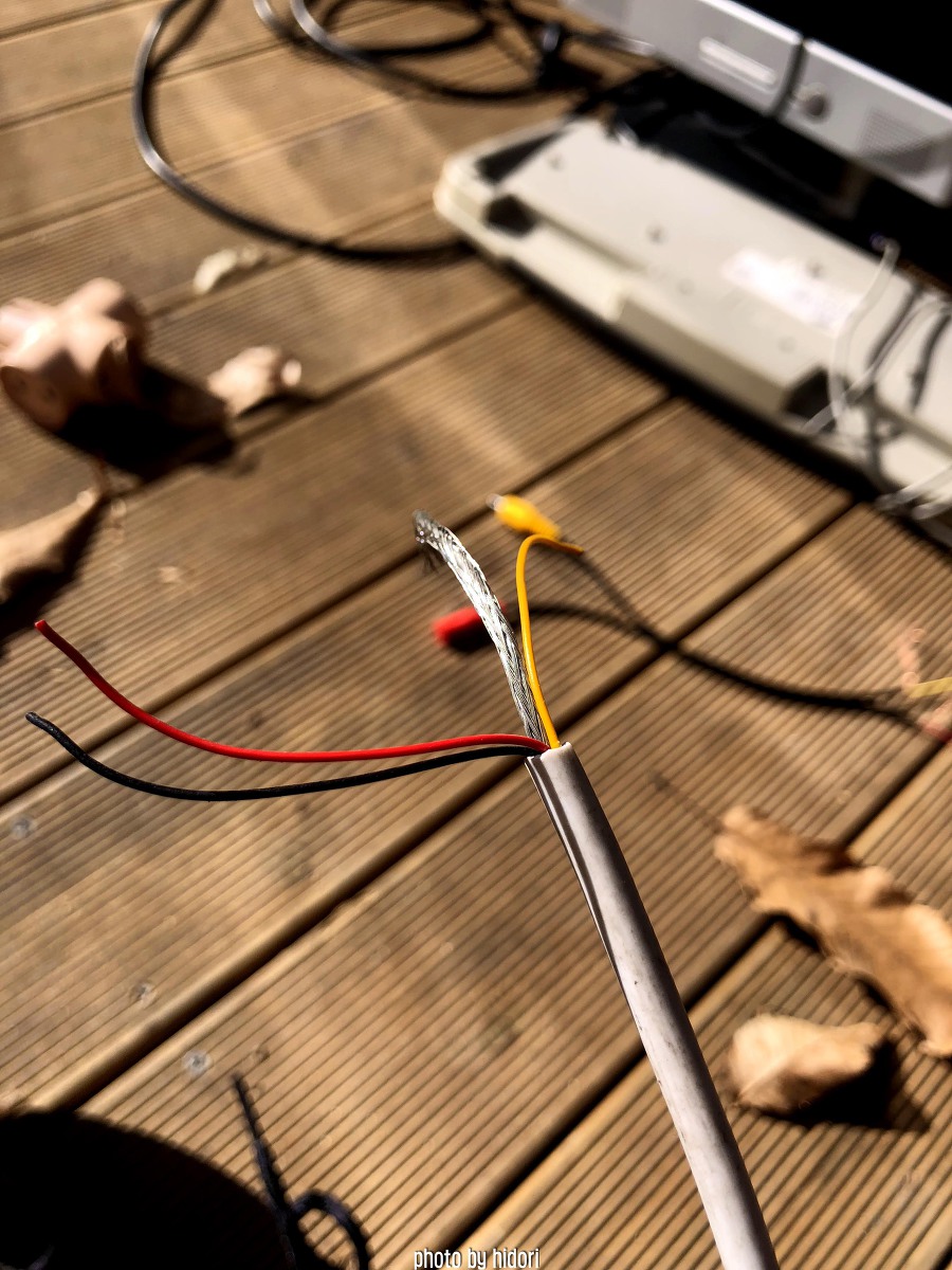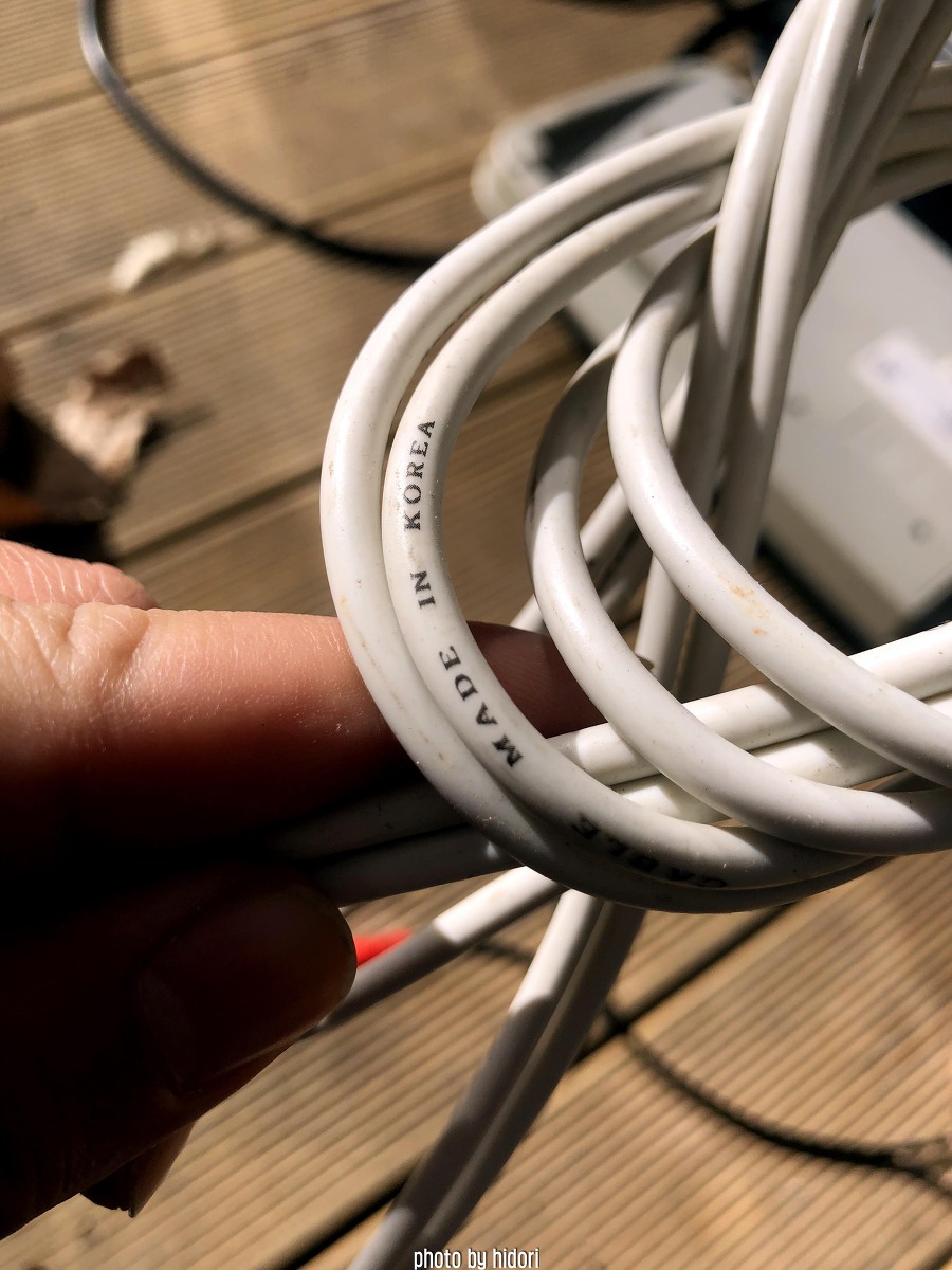 카메라 설치 장소까지 케이블을 연결해야 합니다. 저렴하게 하려면 피복선을 벗겨서 케이블을 직접 개조하는 방법이 있습니다. 영상전원 케이블을 반으로 잘라 내부 피복을 제거하고 원하는 길이만큼 작업하면 됩니다. 전기 아답터는 조금 비싼 제품을 선택하는 것이 좋습니다.