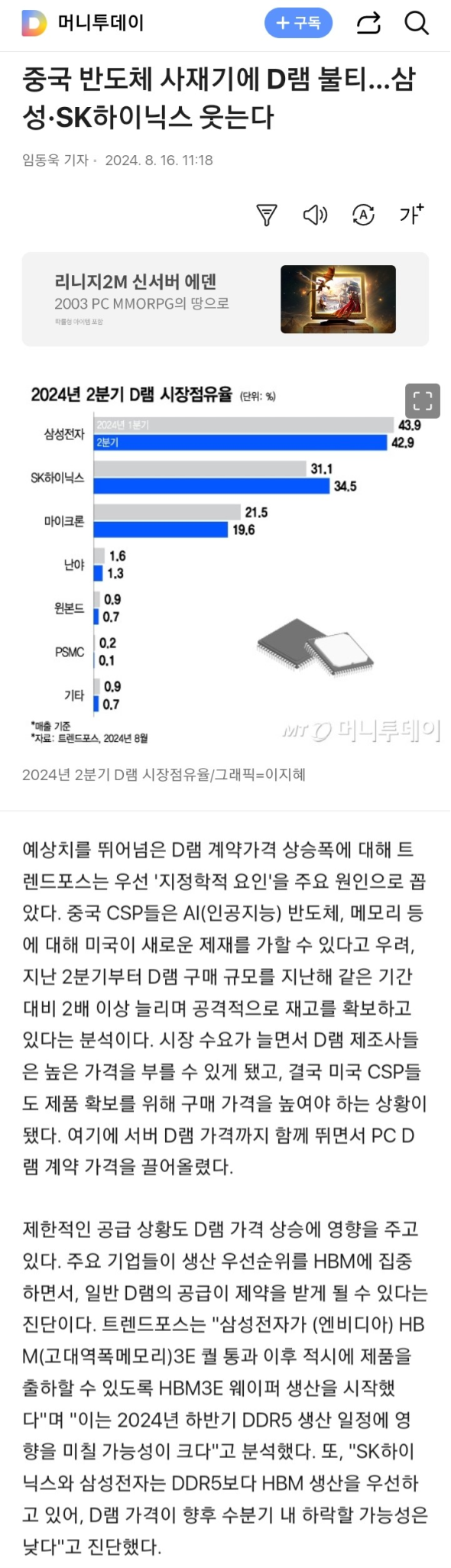 미국의 빅테크 기업들인 구글, 아마존, 마이크로소프트뿐만 아니라, 중국의 화웨이, 텐센트, 바이두 같은 기업들도 메모리 반도체를 대량으로 구매하면서 수급이 어려워졌습니다. 이 와중에 중국은 "웃돈을 얹어줄 테니 제발 팔아달라!"며 삼성과 SK하이닉스에 간절한 요청을 하고 있다는데요.