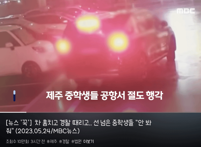 제주공항 주차장에서 차 훔지던 중딩 결국 구속
