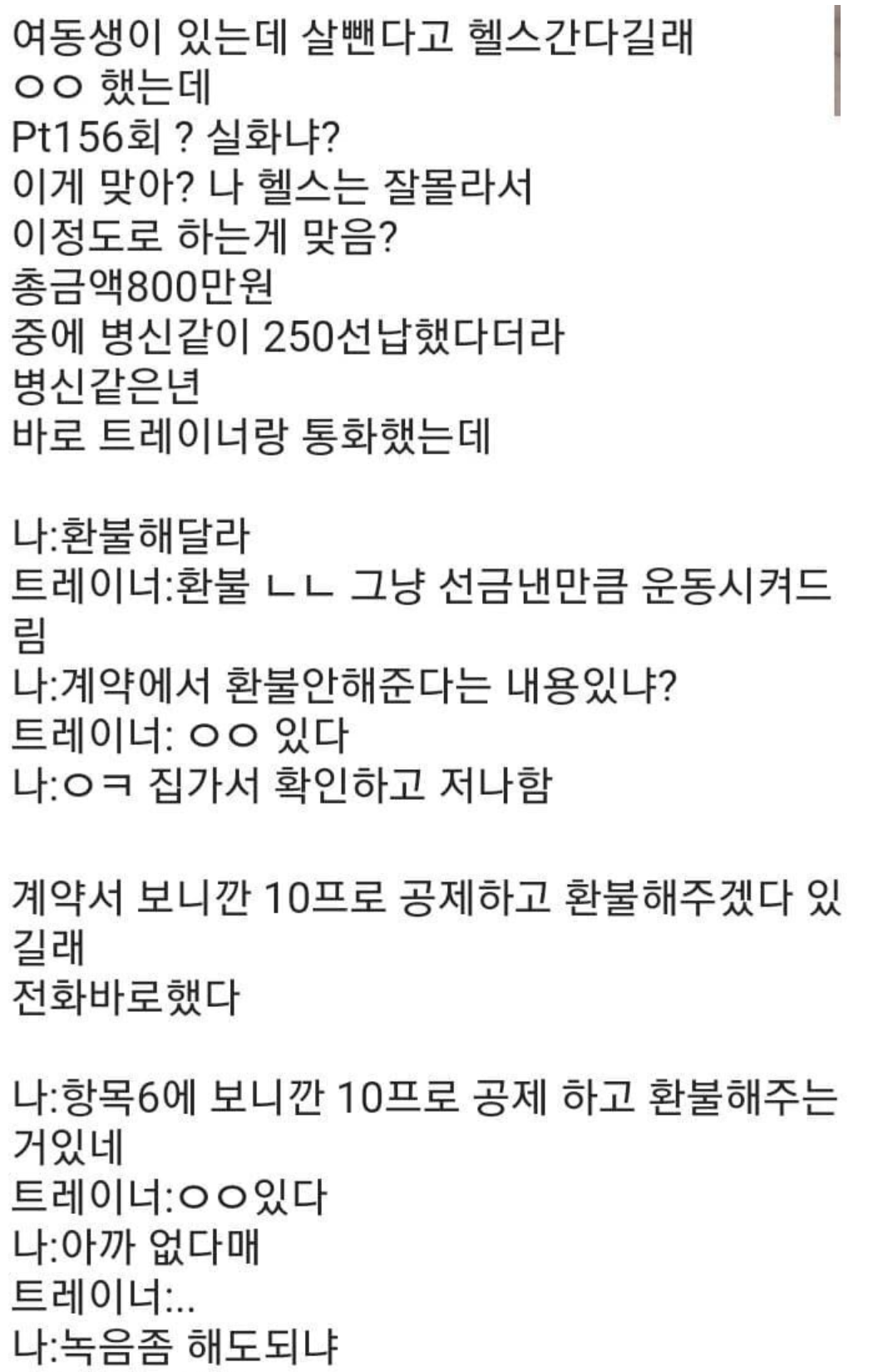 제주도 PT 800만원 헬스장! 결국 환불 하지만 10프로는 공제?