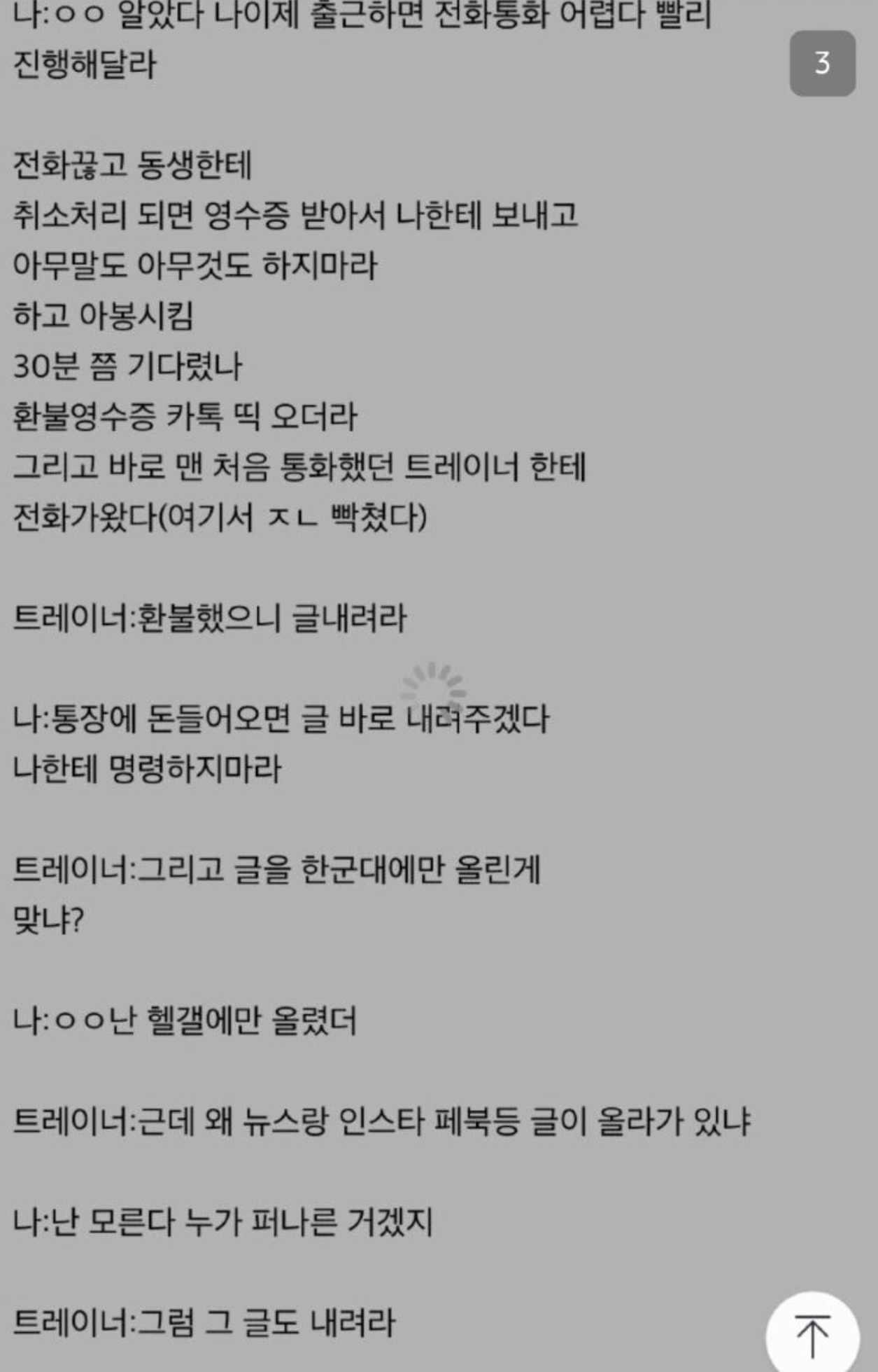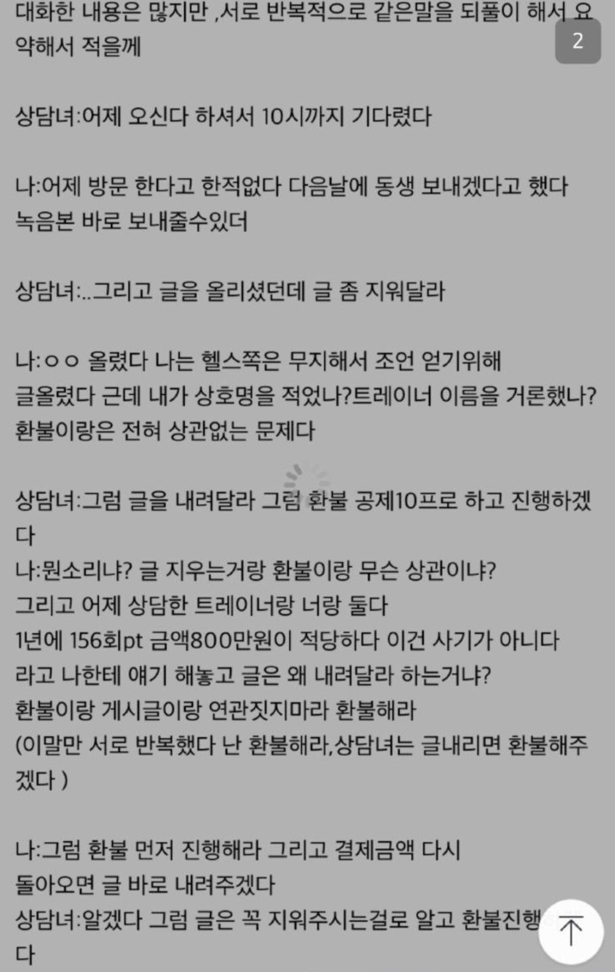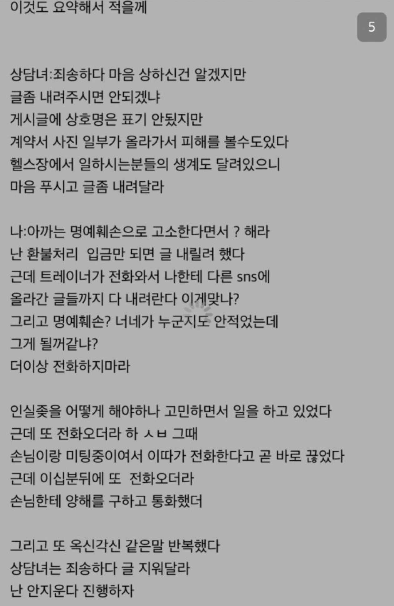 3. 헬스장 글 내릴것을 요구