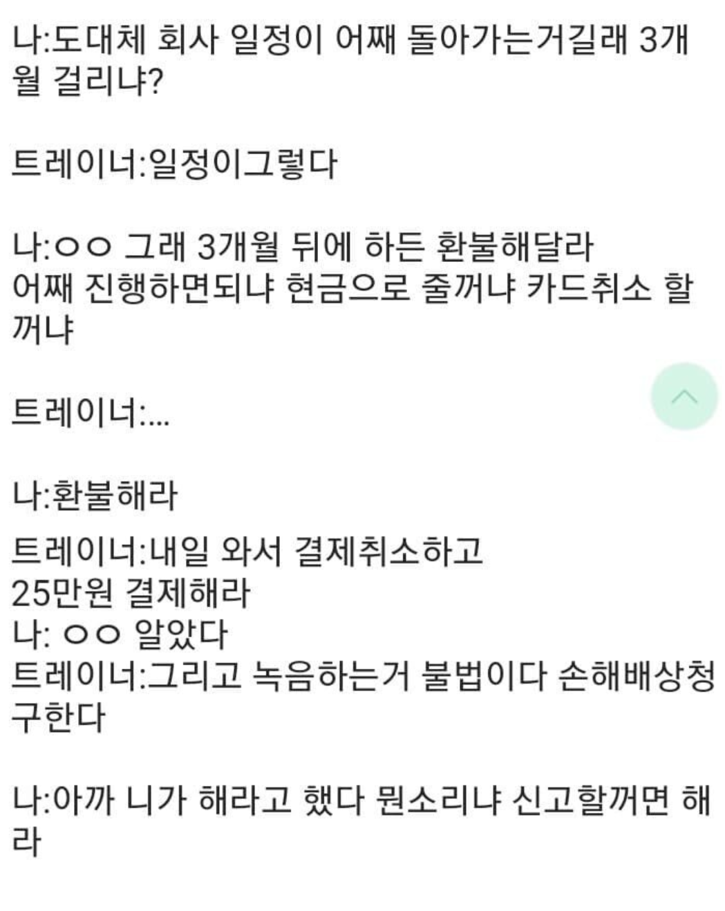 2. 트레이너에게도 겨우겨우 사과받음