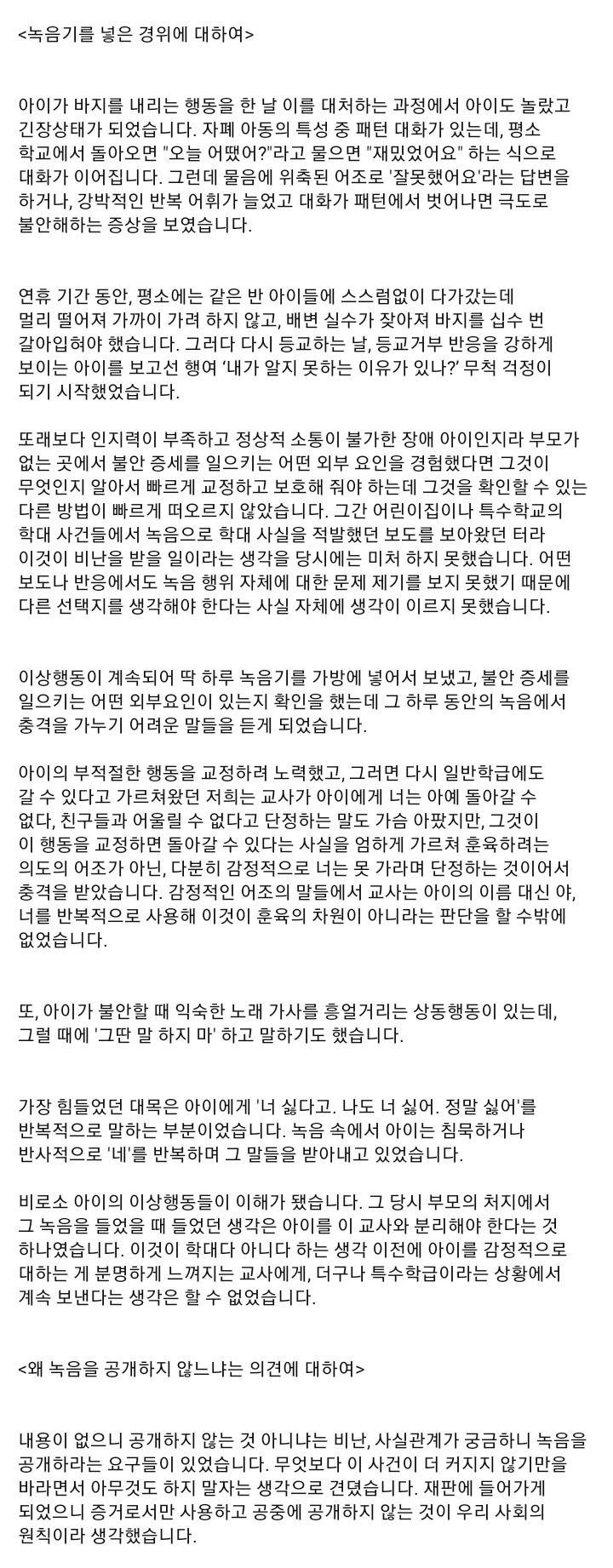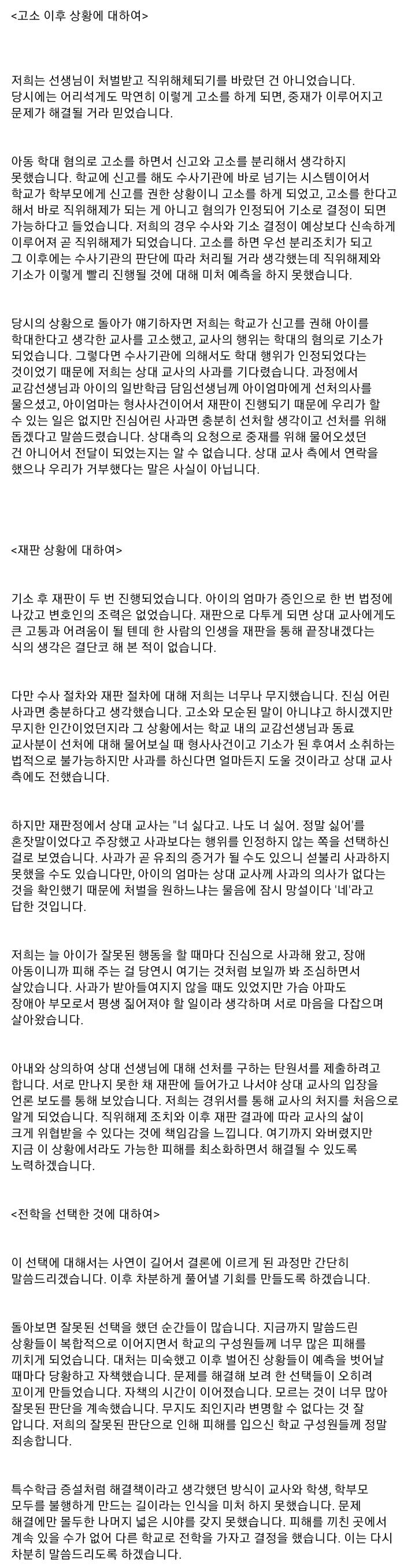 주호민 특수학급 사건에 대한 사과문? 인가???..