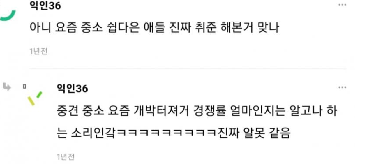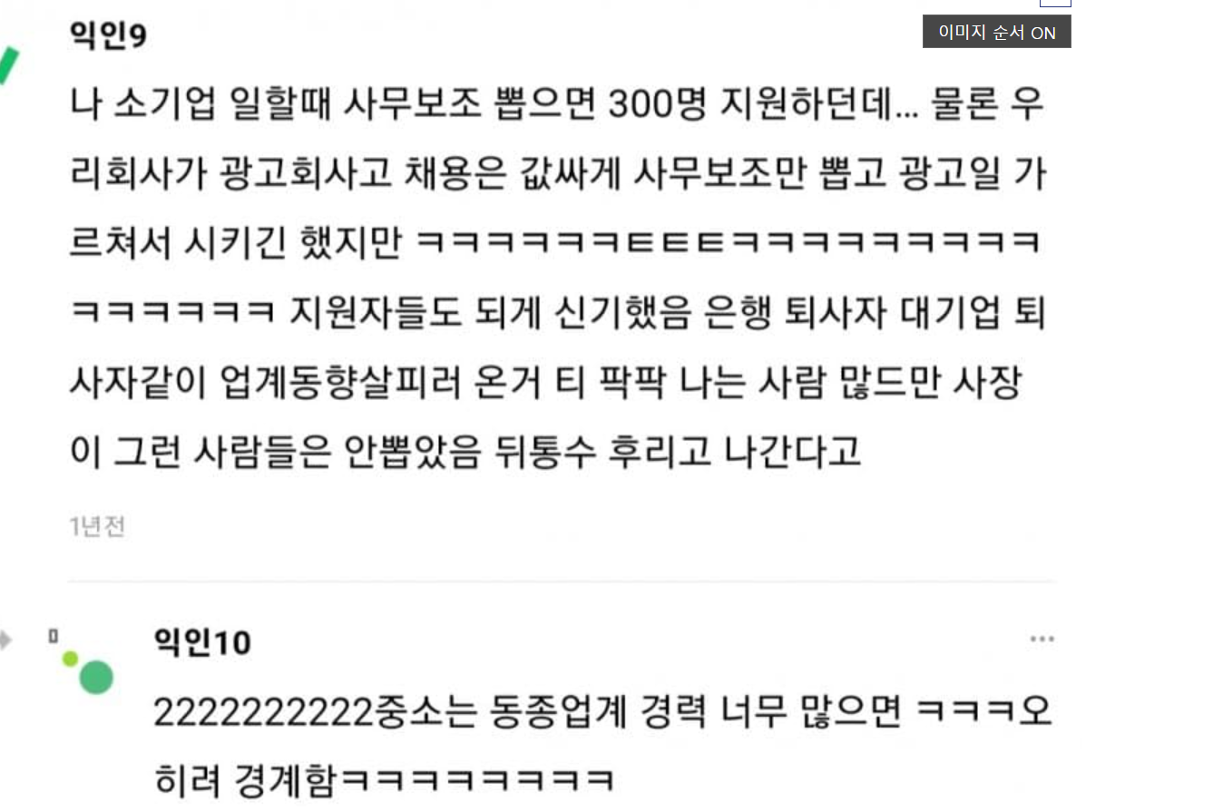 연봉 쥐꼬리여도 최저한의 대우해주는 중소는 경쟁률 박터짐