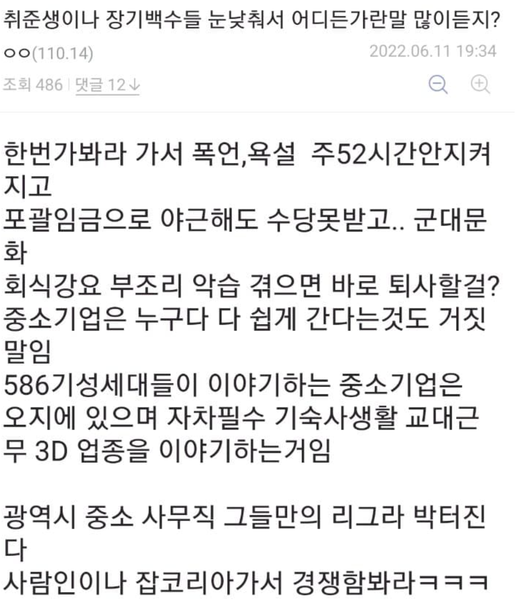 그럼 도대체 구인난이라는 중소는 어떠길래 지원을 아무도 안 하냐?
