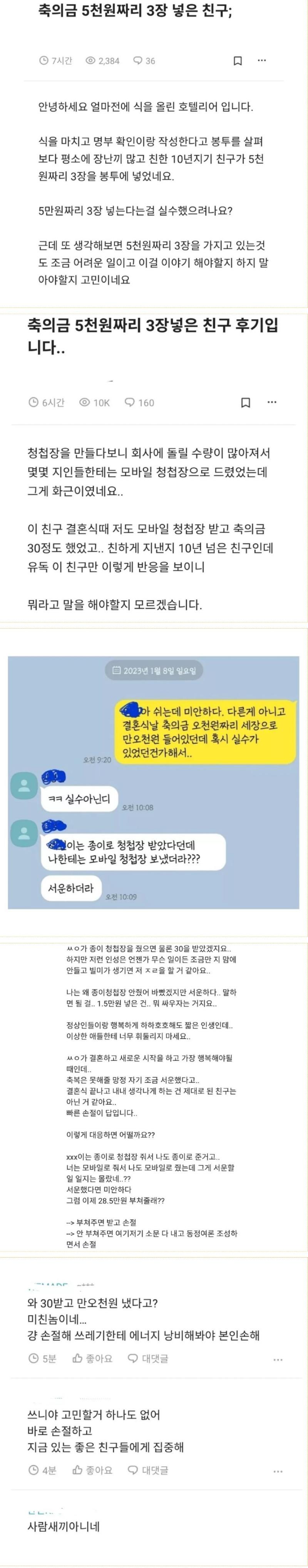 모바일 청첩장을 받아서 기분나빠서 돈을 적게 냈다기보다..