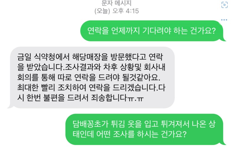 그래서 본사에 클레임도 넣고 현재 식약청에서 문제의 치킨을 회수해간 상태라고 합니다.