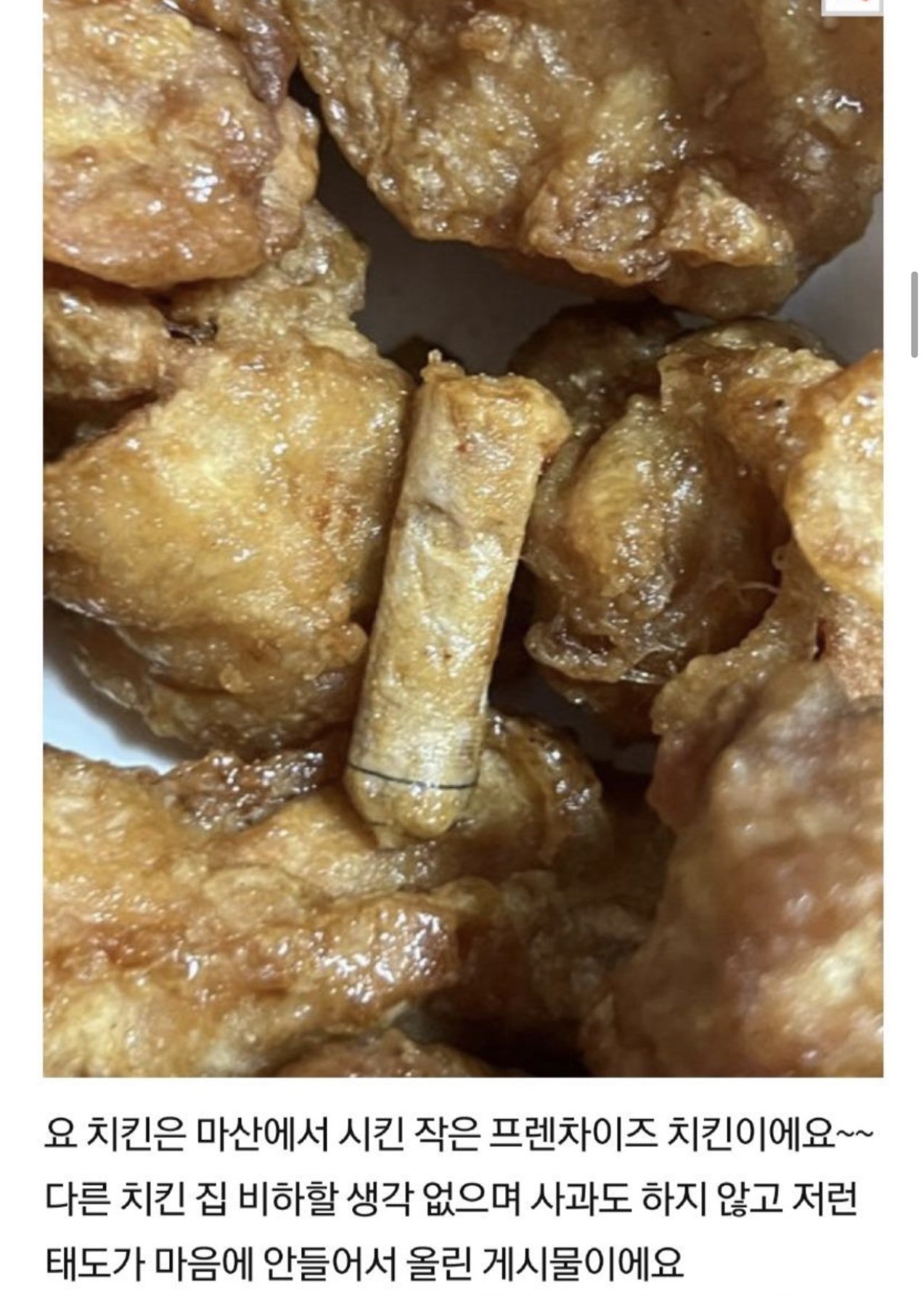 치킨을 주문했더니 담배꽁초 튀김이 온 사연이 있습니다.
