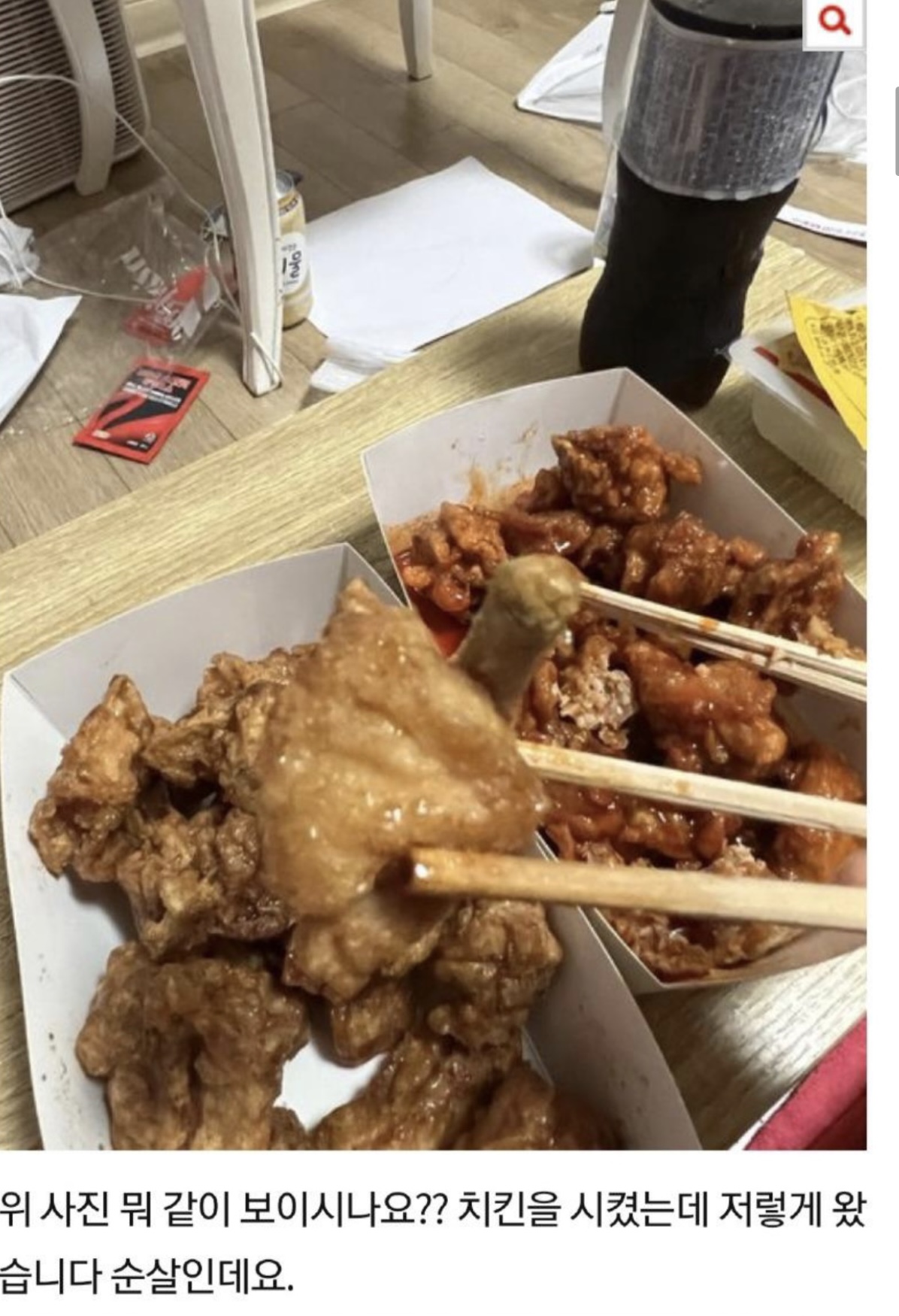 글쓴이가 주문한 치킨은 분명히 순살치킨인데...