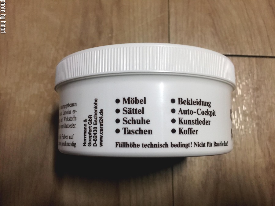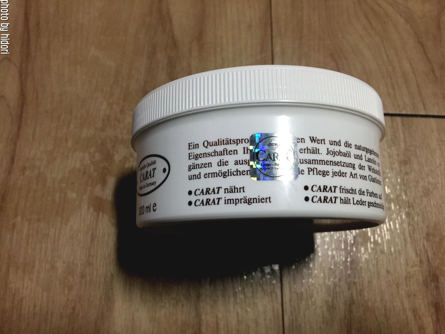 하지만 고급 가죽 제품인 만큼 관리가 필수적이라는 사실! 그래서 알아본 결과, 독일에서 만든 '캐럿 에센스' 가죽 보호제가 눈에 띄었습니다. 이 제품은 화학 원료를 단 1%도 사용하지 않는 친환경 제품이라고 해서 바로 구매했습니다. 벌꿀의 밀납, 호호바유, 바셀린, 라놀린 등 자연 성분으로 만들어져 가죽에 광택을 더해주면서도 보호해줍니다.