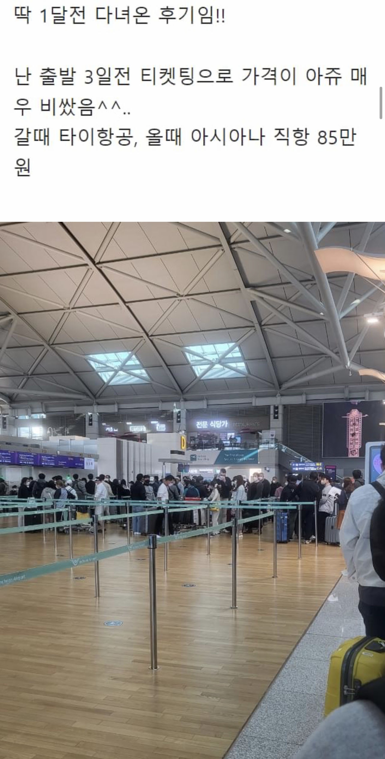 해외여행을 다녀온 후기를 남긴 글을 한번 보시죠.