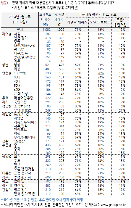 - 한국갤럽: 미국 대통령 선호도 조사 결과