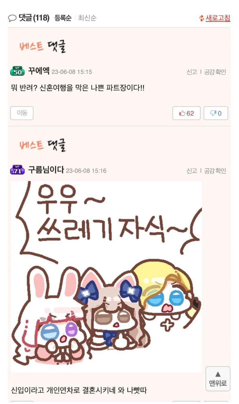 파트장이나 신입이나 심성이 굿!