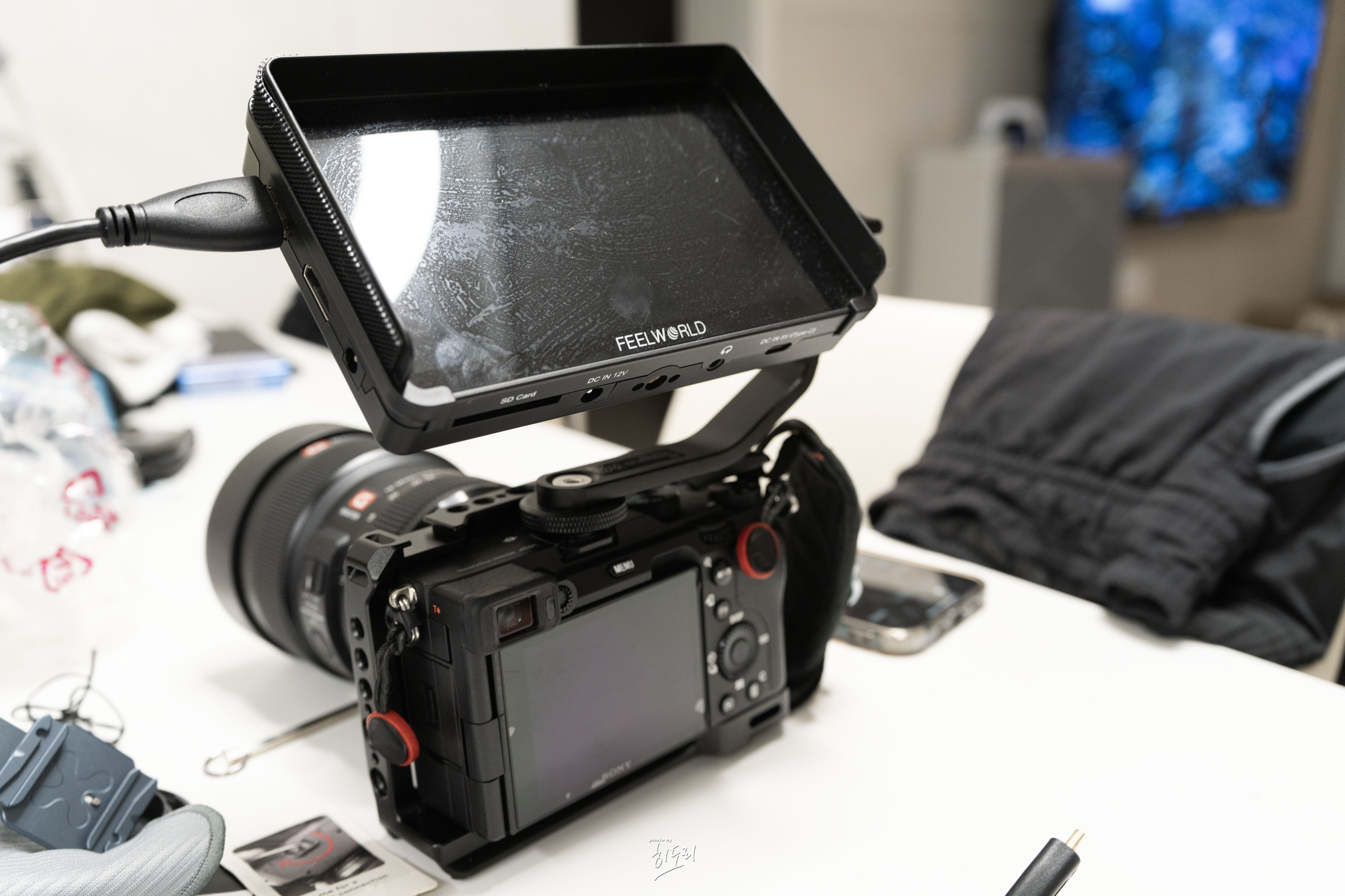 기존 프리뷰 모니터로 사용하던 홀더를 이용했습니다. 보시다시피 기존 프리뷰 모니터는 매번 챙기기도 힘들고 부피도 커서 각잡고 촬영하지 않는 이상 들고 나갈일이 별로 없어요.
