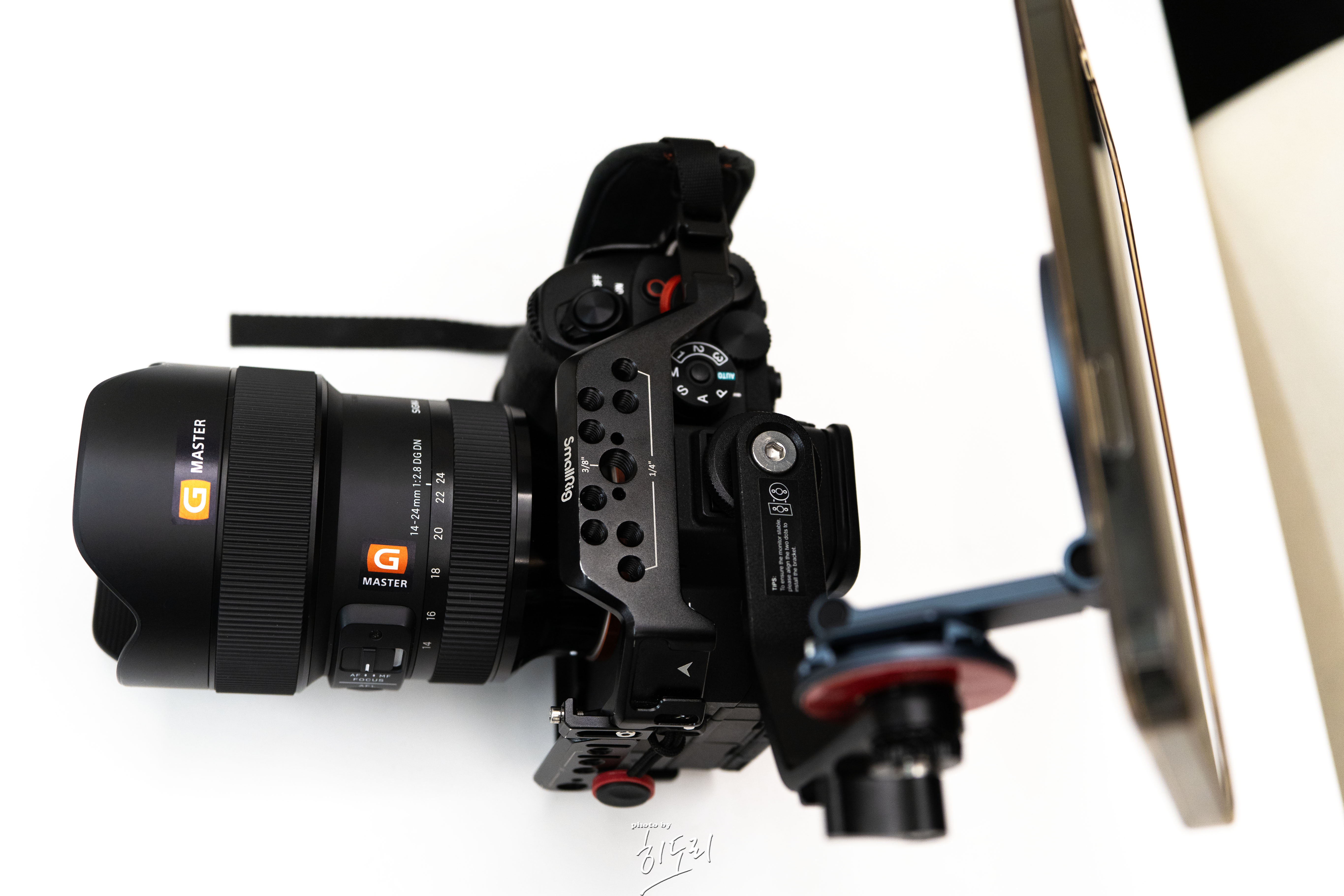 저는 소니 A7C, r5와 함께 이 제품을 사용해 보았는데요, 후면 LCD 해상도와 색감이 약간 떨어지는 편이라 넓은 색영역을 표현하는 스마트폰을 필드모니터로 활용하기 위해 이 홀더를 사용해보았습니다.