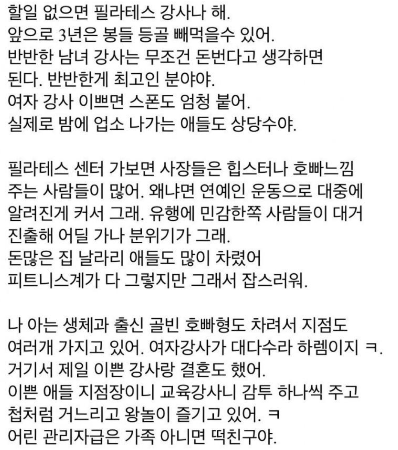도대체 필라테스 강사가 뭐길래 네일아트와 같이 놀았던 언니들이 전부 강사가 되는것일까?